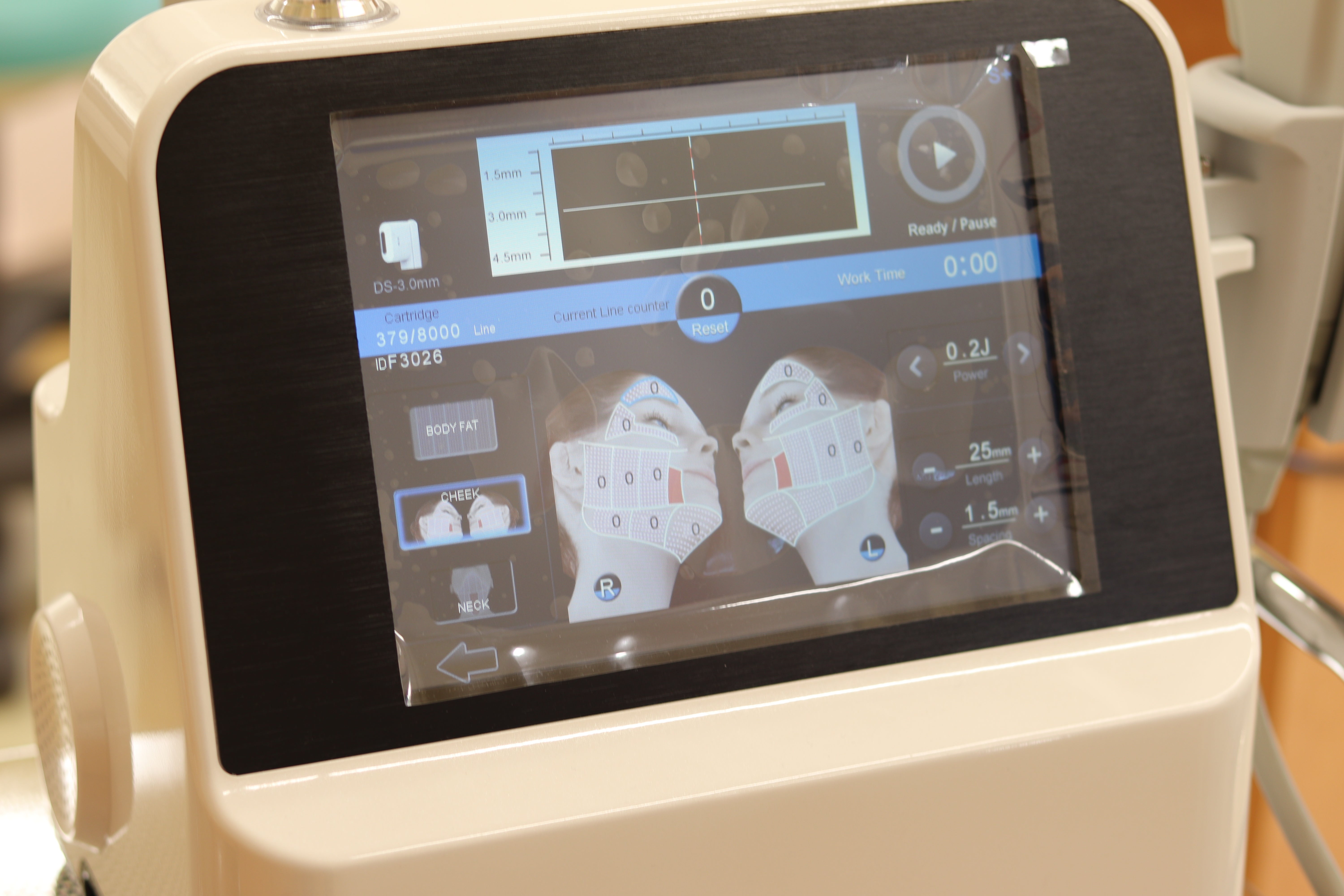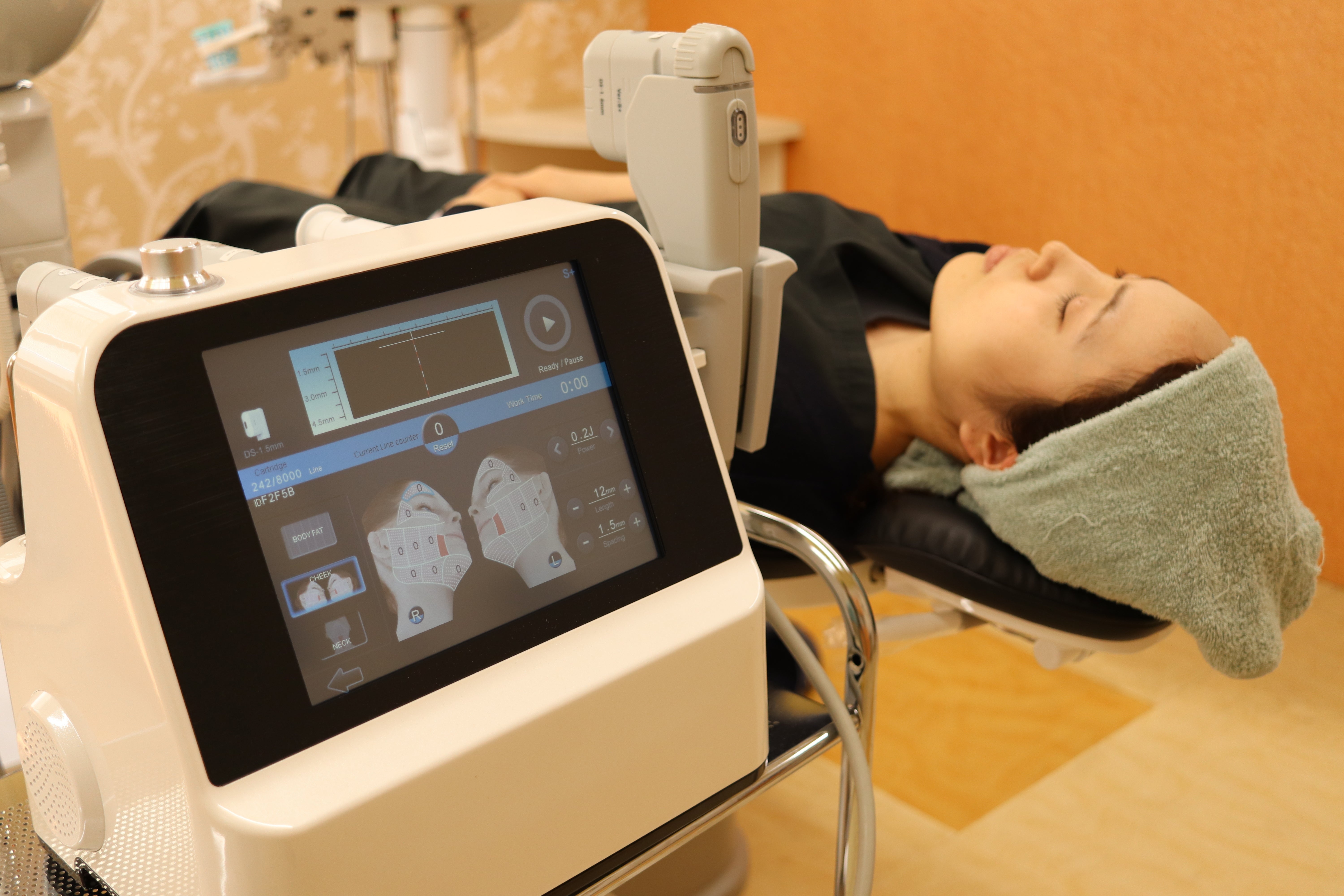 出力の違いによって医療用と美容用の2種類がありますが、当医院では施術時の負担の少なさ、正しい解剖学的知識があれば照射のテクニックによって少ない出力でも確実に効果が得られる点から美容用ハイフを導入しています。