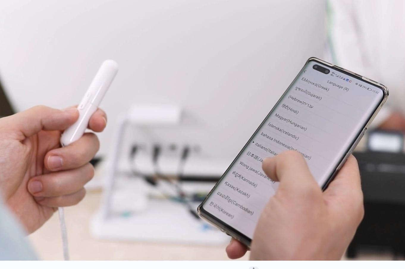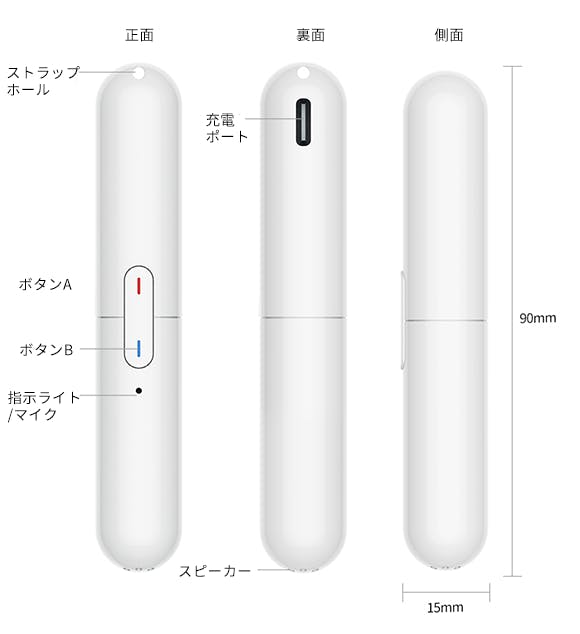 ボタンを押しながら話すだけで翻訳された音声がスピーカーからからリアルタイムで再生されます。