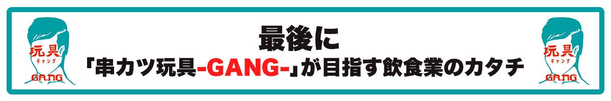 このように「串カツ玩具-GANG-」は、お客さんはもちろん、飲食業に携わる人やそれを支える人、誰も犠牲になることなく心から飲食を愛する人で溢れるお店を目指していきます。