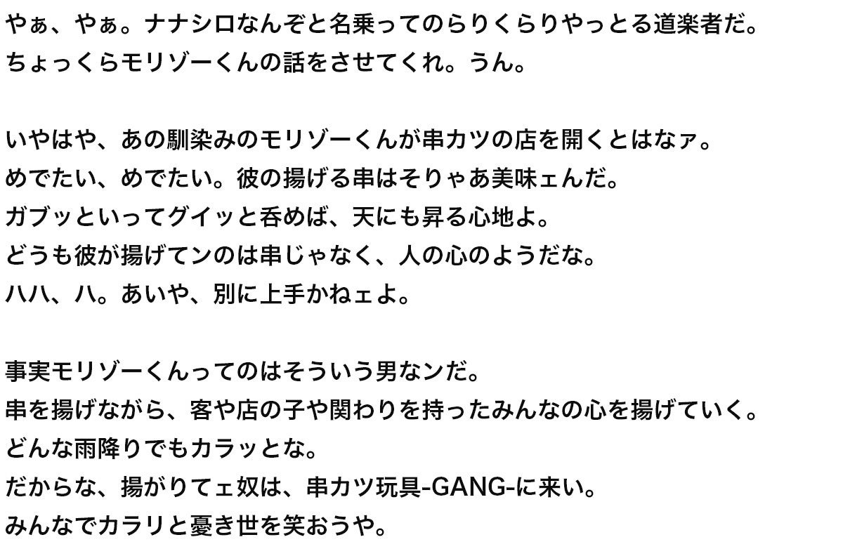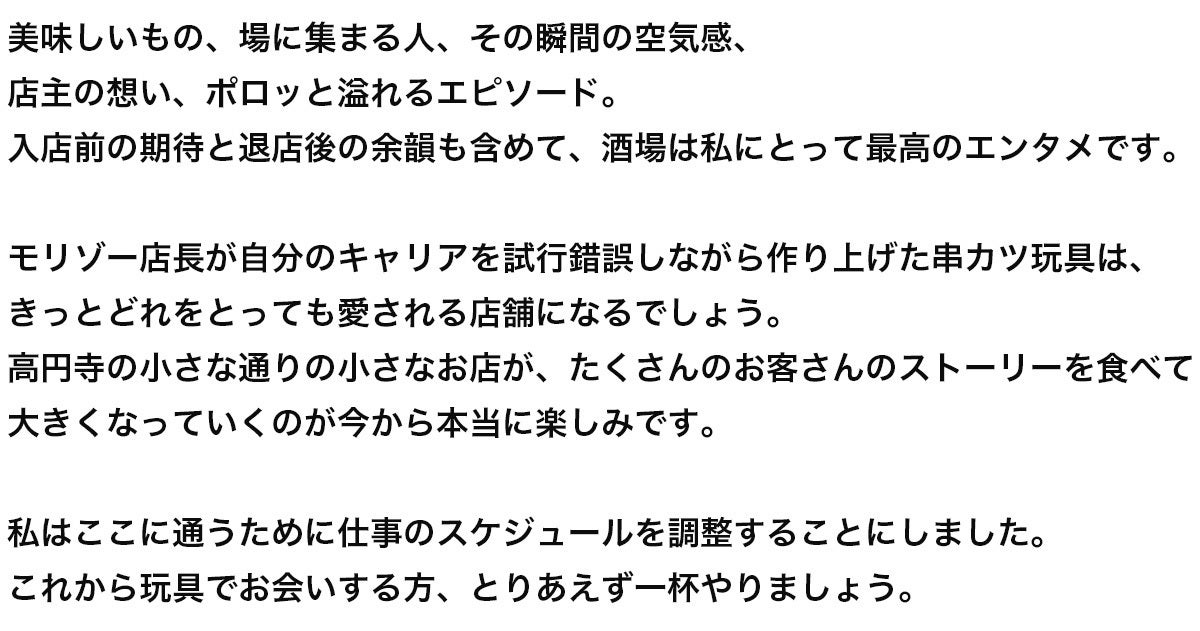 最後にもう少しだけ、「串カツ玩具-GANG-」にかけるぼくの想いを聞いてください。
