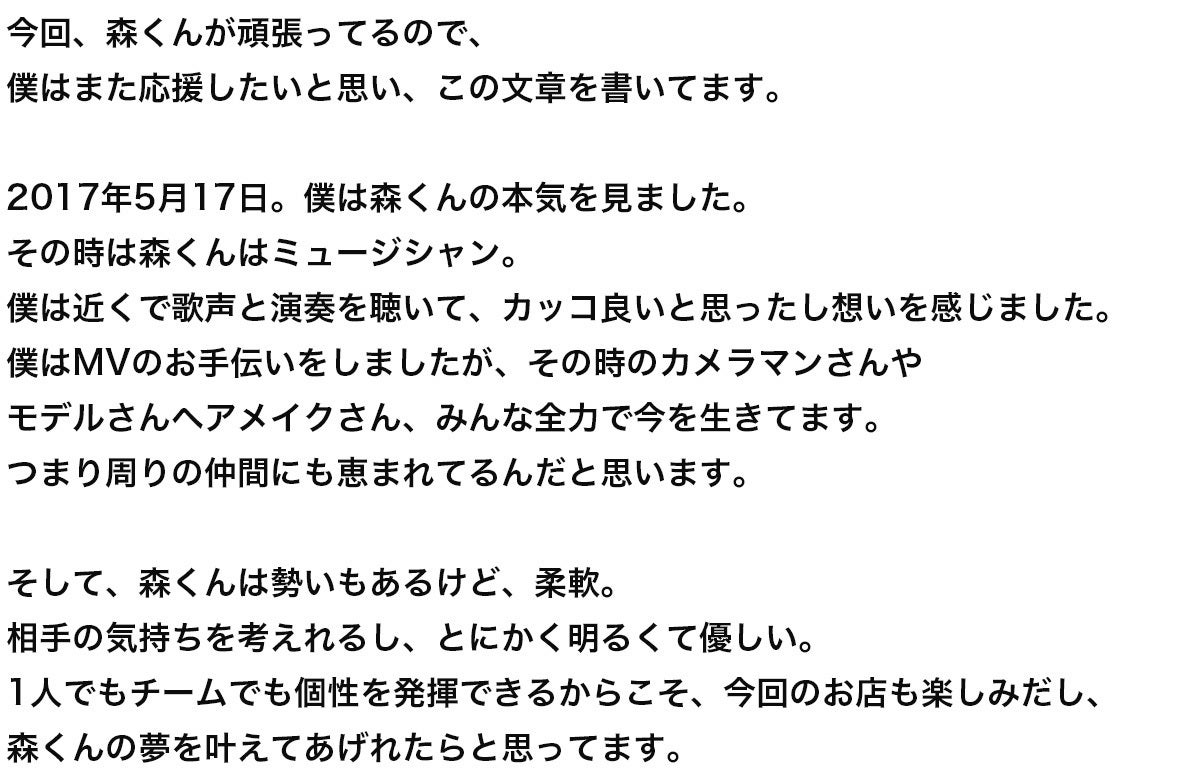 2023/04/19 14:52みなさん応援ありがとうございます!!先日お店の準備をしていたら、愛してやまない酒系YouTuberのなおたか酒場さんと、FCの虎に出演してノリにノっているPERFECT BEERのぬまさんと出会って興奮冷めやらないモリゾーです!みなさんのおかげで、ネクストゴール80万円は発表後4日で達成!さらに次の目標100万円は発表翌日に達成できました!本当に嬉しい!!歓喜!!支援者もありがたいことに100名を越えたという事で、プロジェクト最後まで「支援者200名」を目指して突っ走りたいと思います!オープン準備もしながらなので頻繁にはできないのですが、支援者限定イベント(その場で支援もOK)を開催していきます◎只今決まっているイベントはこちら↓ーーー①:20日12時〜「モリゾーレシピ研究の旅」メニュー開発のため新しくインプットをすべくはしご酒をします!20日の12時、新橋の「英勇屋」からスタートいたしますので、ぜひ一緒に行きましょう!(一軒だけでも大丈夫◎)②:23日19時〜「串カツ会@モテアマス三軒茶屋」三軒茶屋にあるシェアハウス「モテアマス」にて串カツを振る舞います!当日は支援者無料!まだ支援していない方もその場で支援していただければ参加OKなので、ぜひいらっしゃってください!イベント詳細や追加イベントありましたらモリゾーのTwitterにて告知しますので、ぜひチェックお願いします◎ーーー店舗準備も一歩ずつ進めていて、先日は外席に提灯が付きました!赤ちょうちんめっちゃいい感じでしょう!レセプションパーティもスペシャルゲストを呼んで高円寺らしい日にしちゃうので、楽しみにしていてください!それでは! もっと見るサクセスした今だから言えること