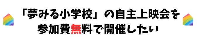 今回は、今までの中では1番大きなイベントとして、映画「夢見る小学校」の自主上映会の開催にチャレンジします。また、上映後にご参加いただいた大人や子どもとともに、子どもたちにとって理想の教育とは何か?そのあり方について話し合うイベントをする予定です。是非ご支援をお願いいたします。