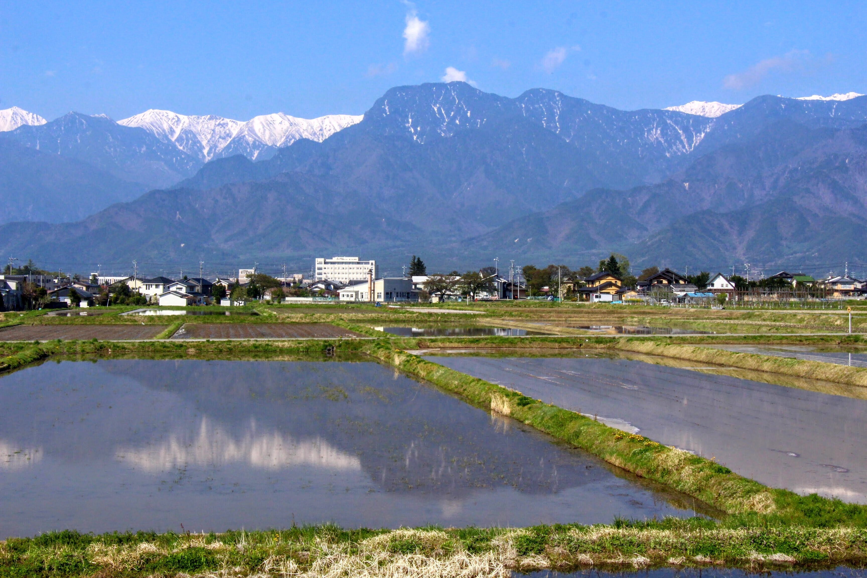 長野県池田町は人口10,000人弱の小さな町です。田園風景と180度北アルプスが見渡せる景観の美しさは全国屈指。山が雪を被っている冬から春の景色は、壮大であると同時に人間のちっぽけさを感じさせてくれます。
