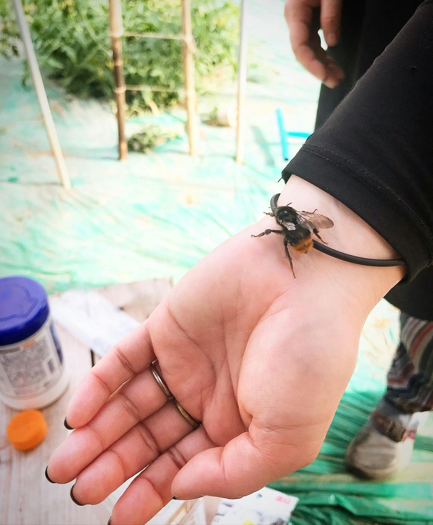 後半の着果作業は、とても大人しい性格のマルハナ蜂(ブラック)による受粉です。