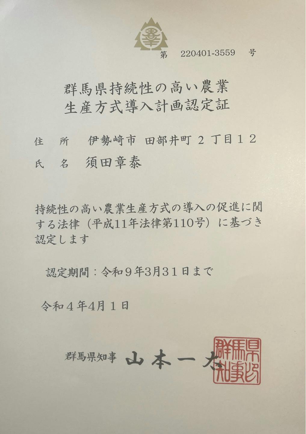 GREEN WAVEでは、群馬県のエコファーマーの認定を受けております。