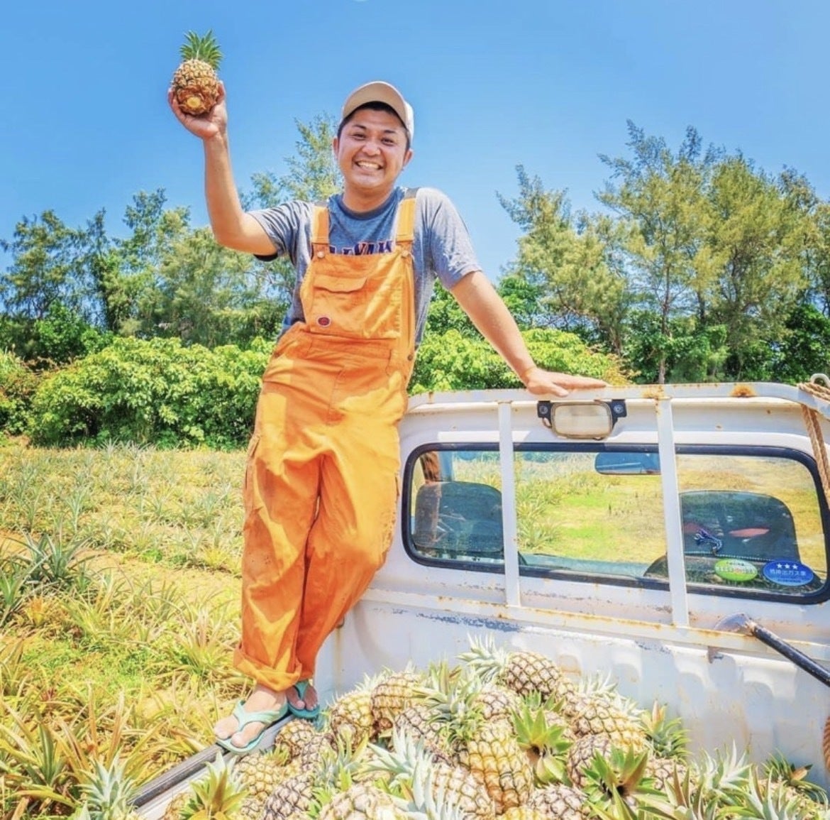 沖縄県西表島にてパイナップル農家にの長男として産まれ、今は2代目として奮闘中 。