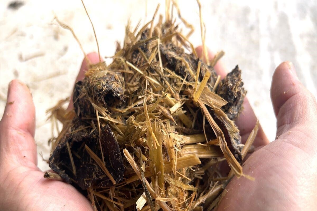 これらを混ぜ合わせて発酵させることで、安価で牛に優しい、沖永良部の恵みがたっぷり詰まった餌を開発することに成功しました。サトウキビの搾りかす(バガス)から育てられる沖永良部島のキクラゲ