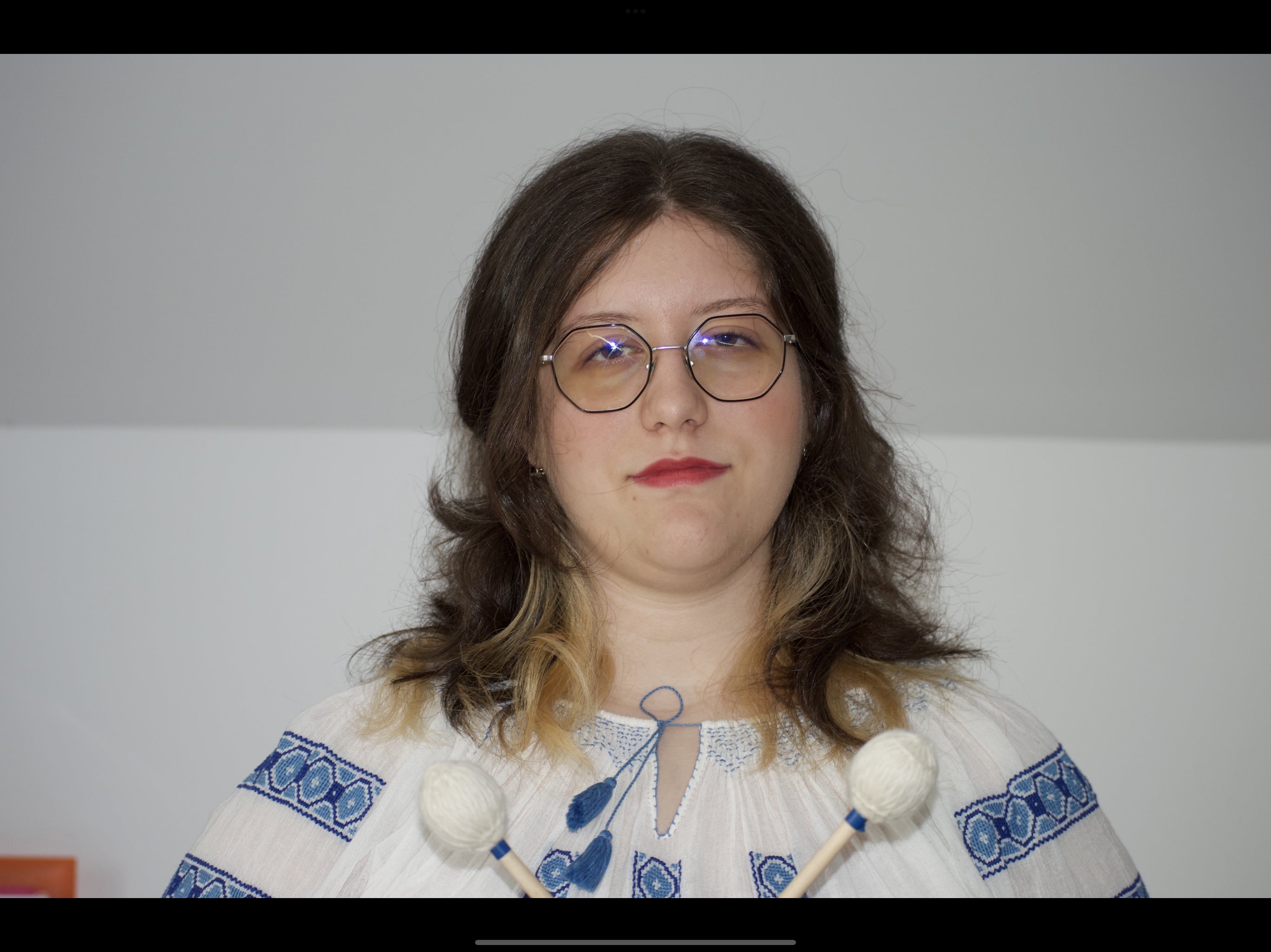 私の名前はアントニア・マリア・ブルラです。16歳で、ヤシ市のオクタヴ・バンチラ国立芸術高校で打楽器を専攻しています。小さい頃にアニメをきっかけに日本に興味を持ち、アニメを通じて日本の民間伝承や歴史、文化を学びました。今年の3月にヤシの芸術大学が日本の和太鼓団体を招待すると聞いて、とても興奮しました。力強い太鼓の音色を肌で感じるまたとない機会でした。