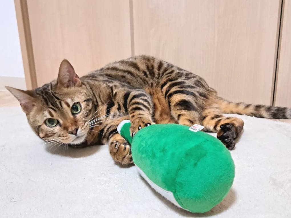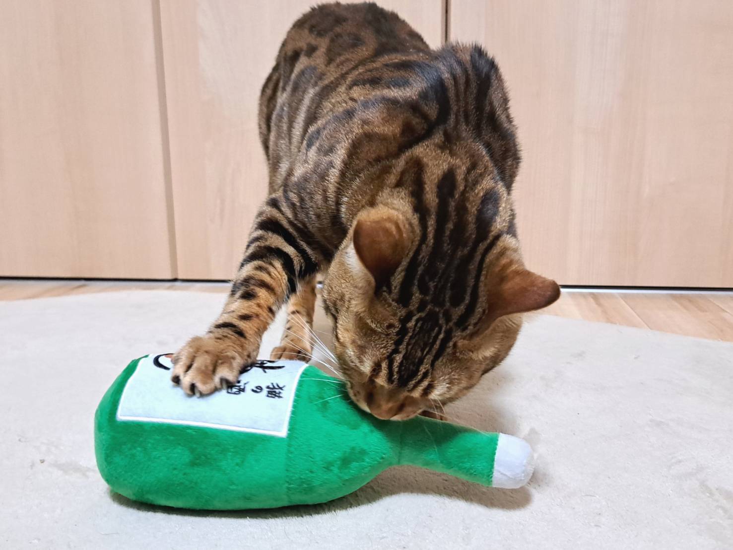 わたしも、優しさの連鎖が命あるものを笑顔にし、幸せが波状に広がっていってほしいと願っています。そしてぜひ「酒瓶キッカー」に抱き着いたり、噛んだり蹴ったり暴れたりしている愛猫の姿に多くの方が酔わされ、癒されてほしいです。ぜひ1猫に一個、「つめとぎギフトボックスおもちゃセット」、もしくは、単品販売中の「酒瓶キッカー」を!