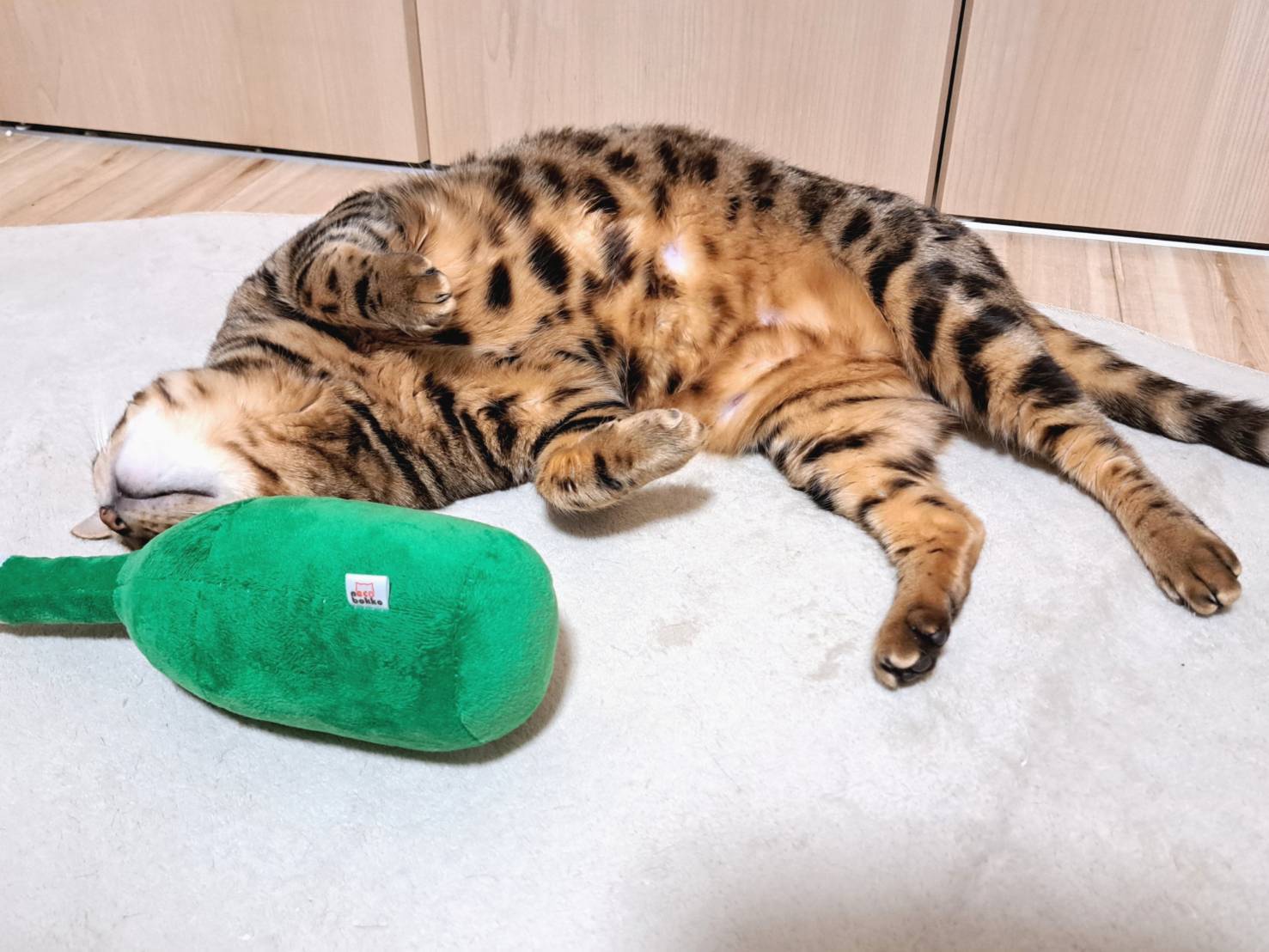飲み過ぎたにゃ~。もう動けない…にゃ…… スヤスヤ。