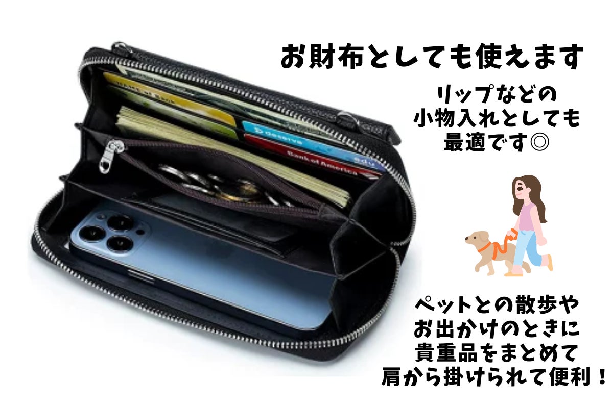 スマホも小銭も紙幣もカードも入る高い機能性にうっとり!貴重品をすべてまとめて肩にかけられるので、大切なペットとのお散歩など両手を空けておきたいときに重宝すること間違いなしです!!さらに本革製なので、ペットとのお出かけや通院など、余所行き用としても使えます。