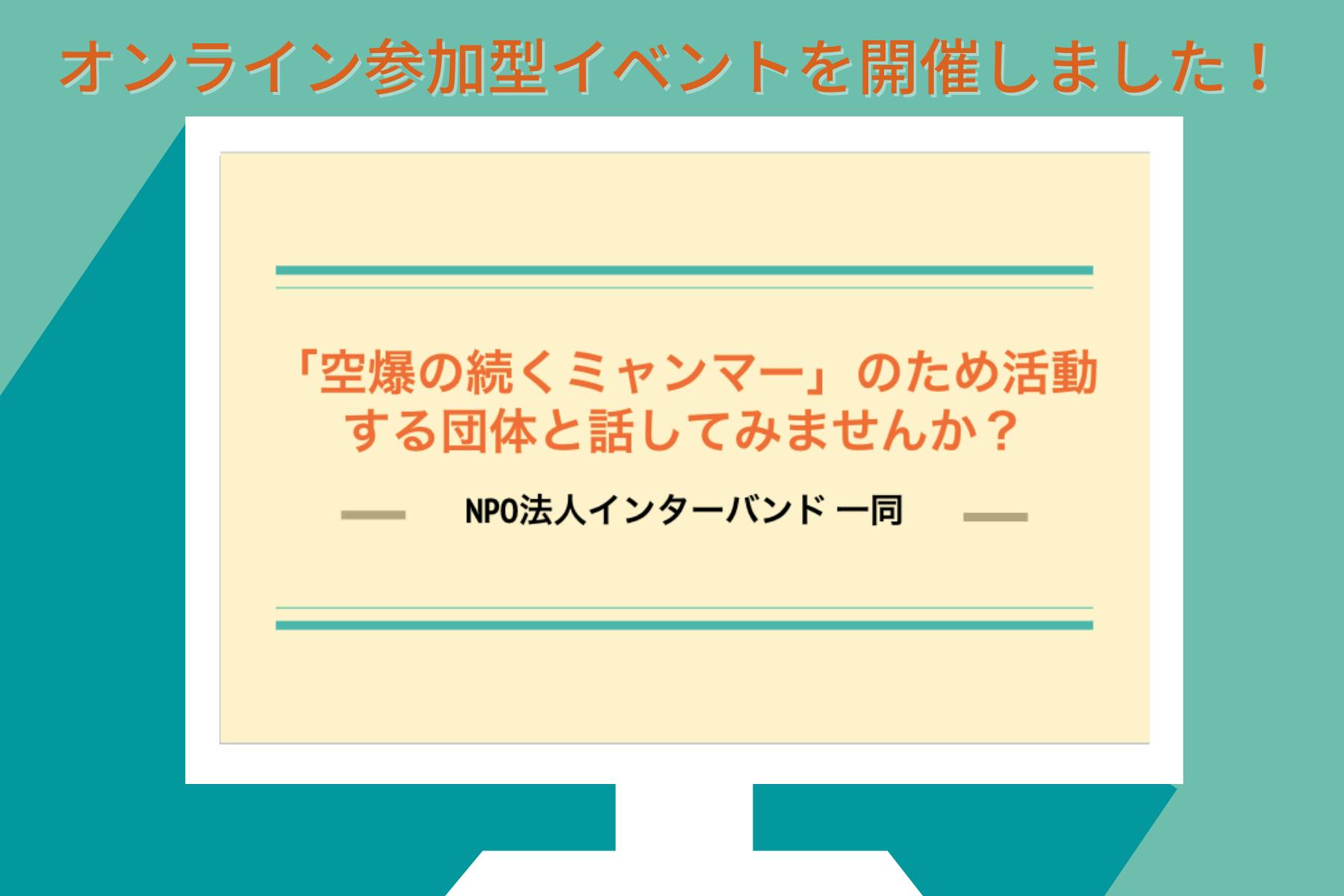 今回、インターバンドとしては久しぶりとなる参加型のオンラインイベントとなり、参加者の皆様とリアルタイムで会話のように意見を交換する機会を得られたことは、とても大きな意義がありました。イベント開催のために、私たちも1からミャンマーについて、クーデターの背景について、私たちがしてきた活動について学び直す機会となりました。その上で、参加者のみなさまから新たな意見をいただき、私たちにできること、私たちがやるべきことについてクリアにすることができたのではないかと思います。