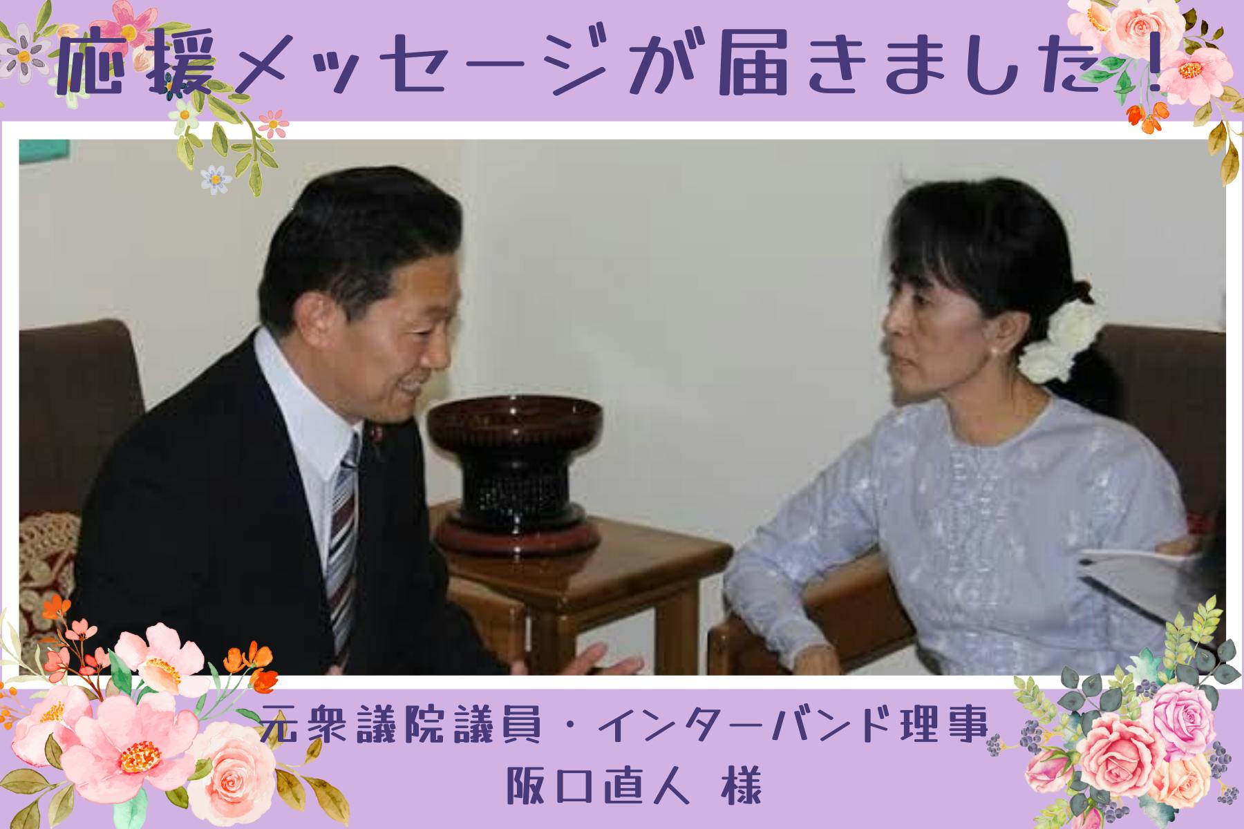 記事のトップ画像の写真は阪口さん(右)とアウンサンスーチーさん(左)です。阪口さんは、アウンサンスーチーさんとお話しされたこともあり、当団体カンボジアバンドの活動だけでなく、ミャンマー民主化支援にも力を貸してくださっています。