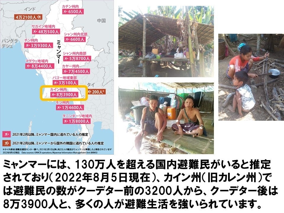 2021年クーデターが起きた後、都市部ではもちろん少数民族が住む地方部でも多くの方が未だに避難生活を強いられています。
