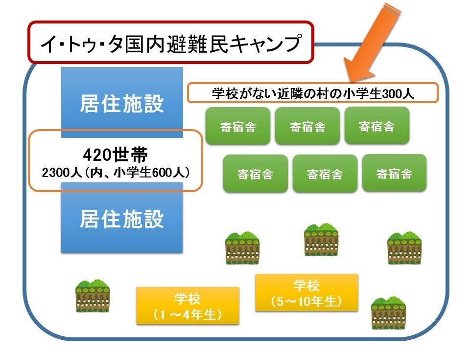 避難民キャンプの学校に通う73人の小・中学生と7人の先生に対して、およそ1ヶ月分の食料、そして長期化する避難生活を支援するためのその他物資を送ります。