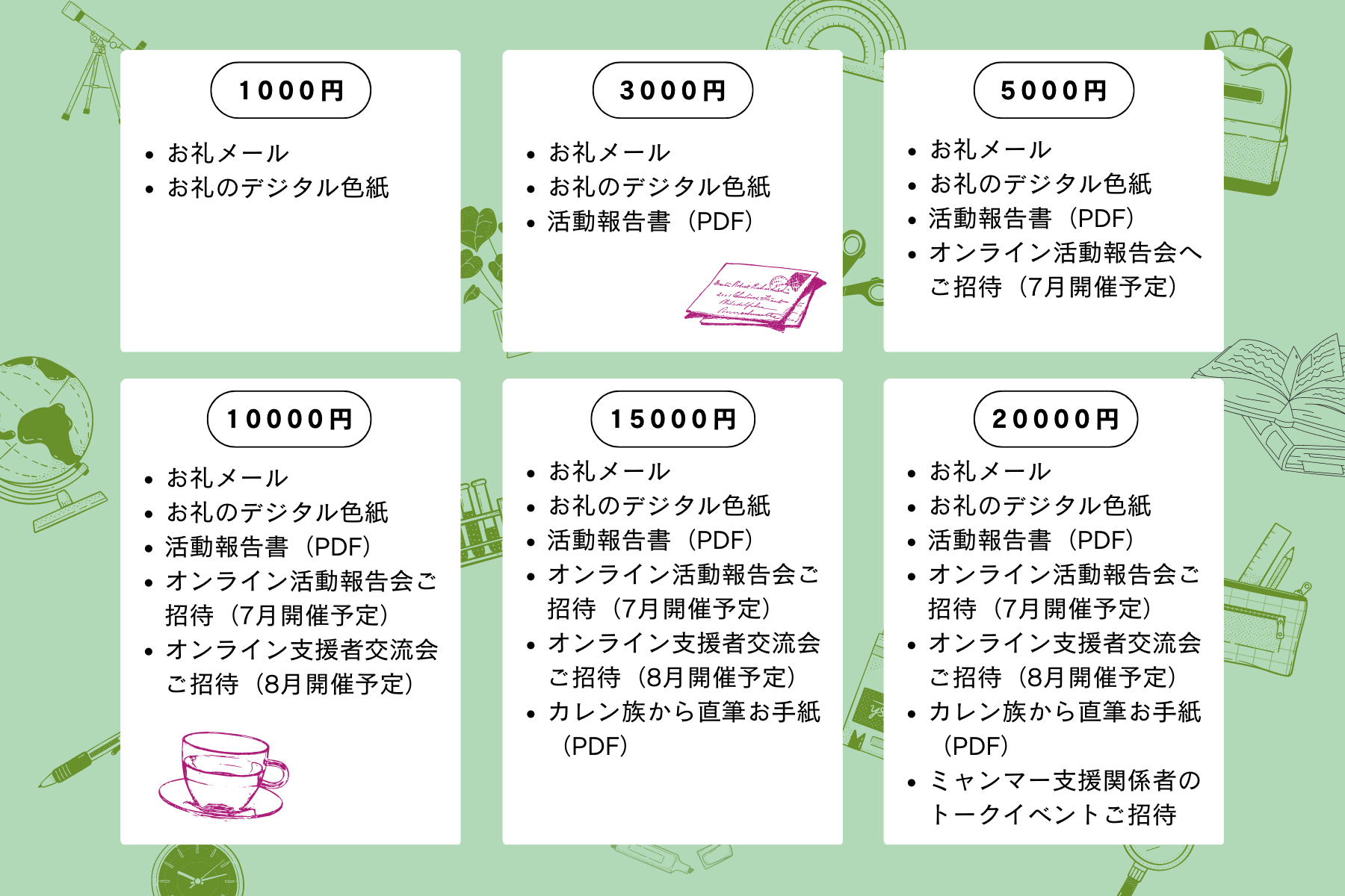 2023/04/01 21:33「空爆が続くミャンマーへ。教育支援で子どもたちに明るい未来を。」を応援いただいた皆様、こんにちは。3月3日にスタートしたカレン族人道支援プロジェクト「空爆が続くミャンマーへ。教育支援で子どもたちに明るい未来を。」クラウドファンディングキャンペーン、昨日、3月31日を持ちまして終了いたしましたことをご報告させていただきます。今回のクラウドファンディングキャンペーンでは、34名の方から216,000円のご支援をいただきました。ご支援いただいた皆様、拡散にご協力いただいた皆様、そして、期間中のイベントにご参加くださった皆様には、改めて、お礼申し上げます。皆様からいただいたご支援は、皆様からの思いとともに、確実に、責任を持って、支援先であるカレン族の元へと届けさせていただきます。その様子は都度、皆様にご報告いたしますので、どうぞ続報をお待ちください。今回のクラファン挑戦を通して、さまざまな新しい出会いがあったこと、それに伴って様々な意見や支援の形に触れられたこと、とても光栄に思っております。キャンペーンは終了いたしましたが、私たちインターバンドの活動は続いていきます。長くインターバンドの活動を応援していただいている方はもちろん、キャンペーンを通してつながることができた方々とのご縁も大切に、今後のインターバンドの活動も見守っていただけると幸いです。最後に、クラウドファンディングキャンペーン「空爆が続くミャンマーへ。教育支援で子どもたちに明るい未来を。」にご協力いただきました皆様に、スタッフ一同、心より感謝申し上げます。特定非営利活動法人インターバンド 代表 小峯茂嗣学生インターン一同 もっと見る
