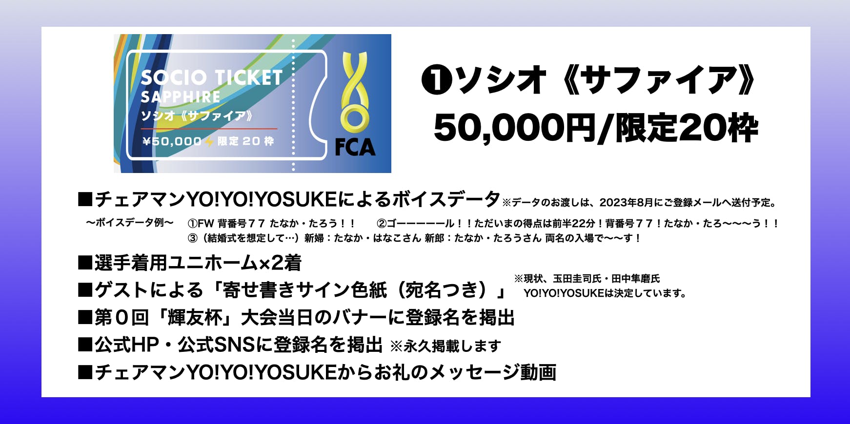 「ソシオ」とは、本協会の活動、チェアマンであるボクの想いに賛同いただける「年間賛助会員様」のことです。※本件の「ソシオ=年間賛助会員」の適用期間は、2024年3月末日までとなります。