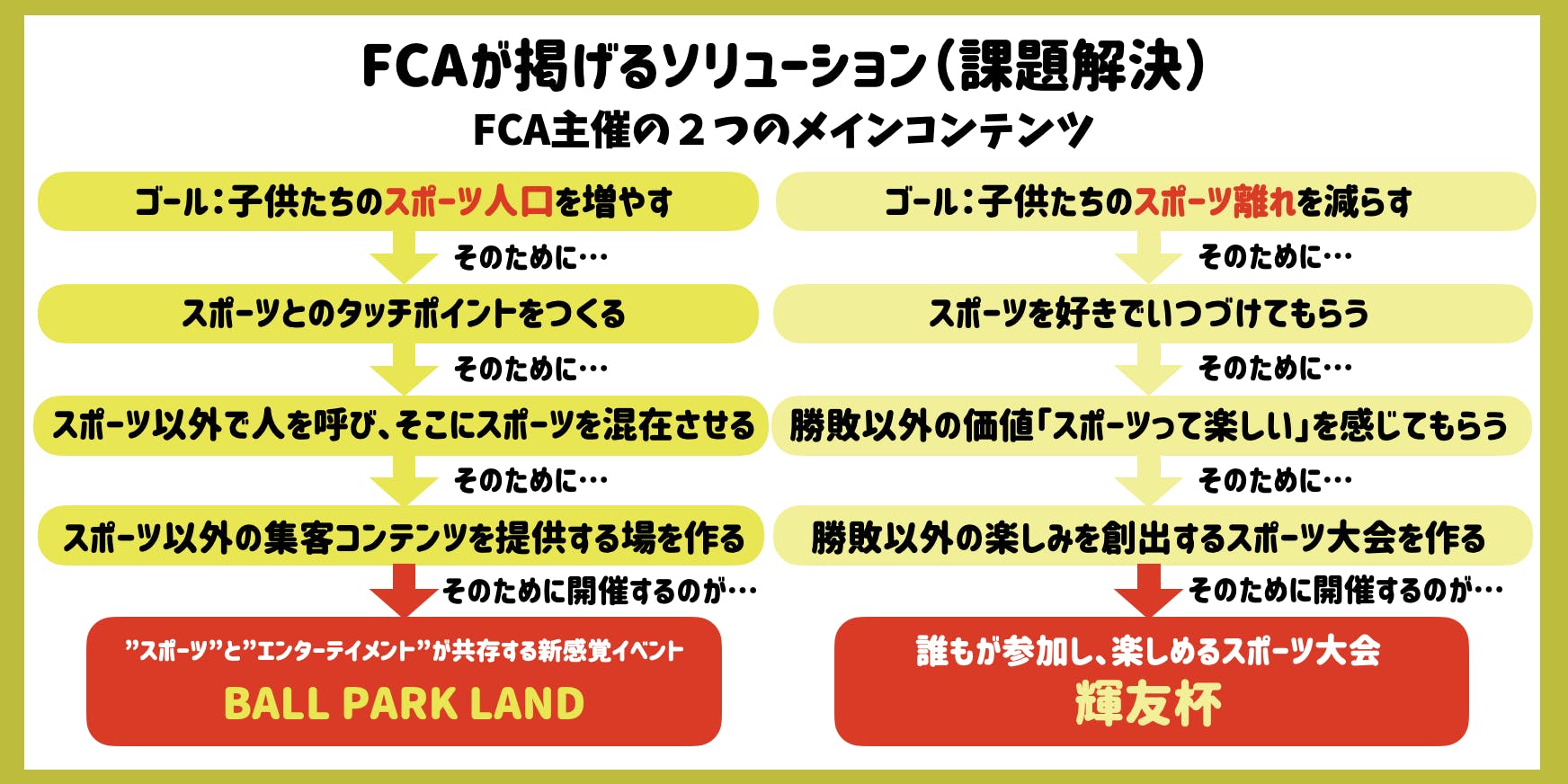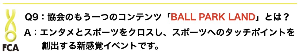 そんな課題を解決する存在が「ボールパーク」であり、そんなボールパーク普及に貢献する第一歩として、「イベント型ボールパーク」の「BALL PARK LAND」を開催することを決めました。「BALL PARK LAND」が最も重要にしているのが「FUN=楽しいを届けること」とスポーツの「FAN=ファンを増やすこと」。