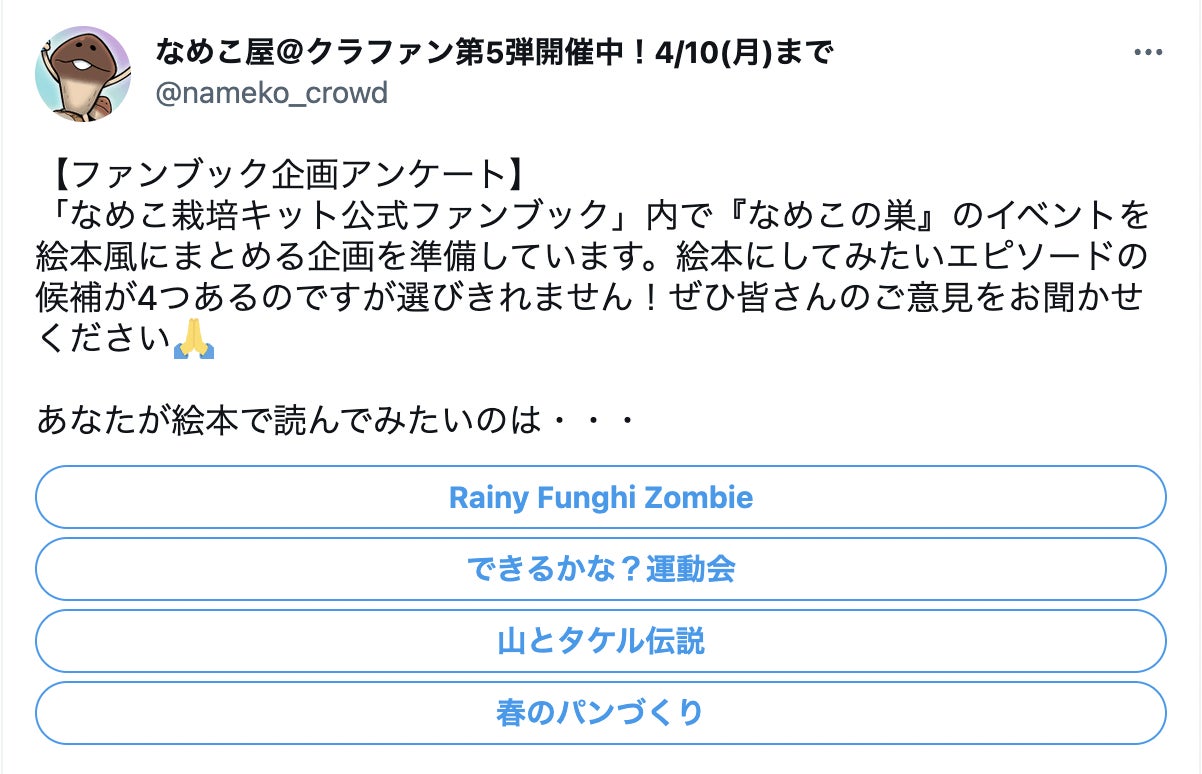 「なめこ栽培キット公式ファンブック刊行プロジェクト」へのご支援、温かい応援、コメント誠にありがとうございます!