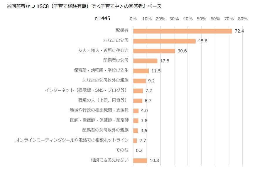 「実父母」45.6%、「友人・知人・近所 に住む方」30.6%という結果となった。