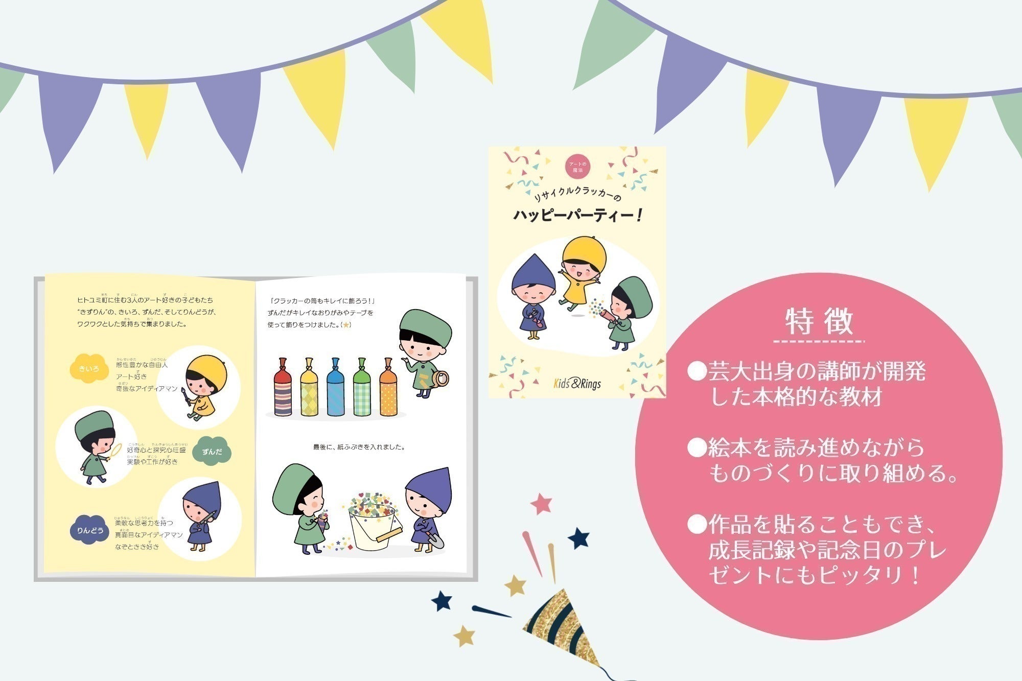 Kids&Rings(略称 きずりん)のサービスを、毎月違ったテーマが届く定額制通信教材としてスタートしました。