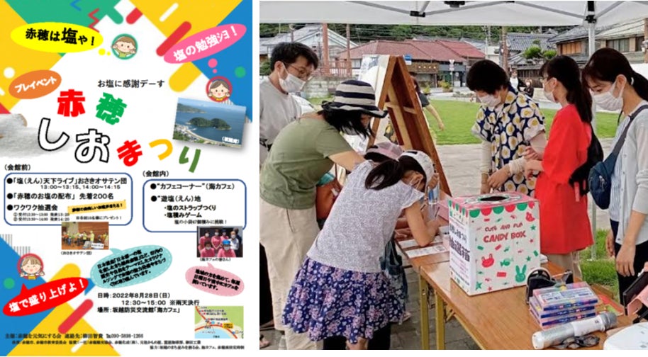 2022年8月28日に第1回プレイベントを運営資金がほとんどない中、赤穂市坂越の防災交流館で開催しました。約300人がいらっしゃいました。