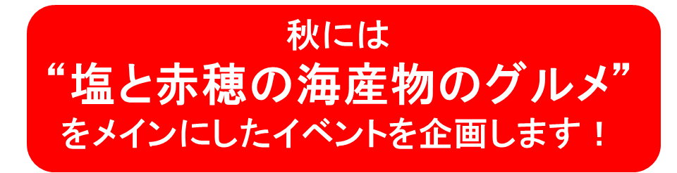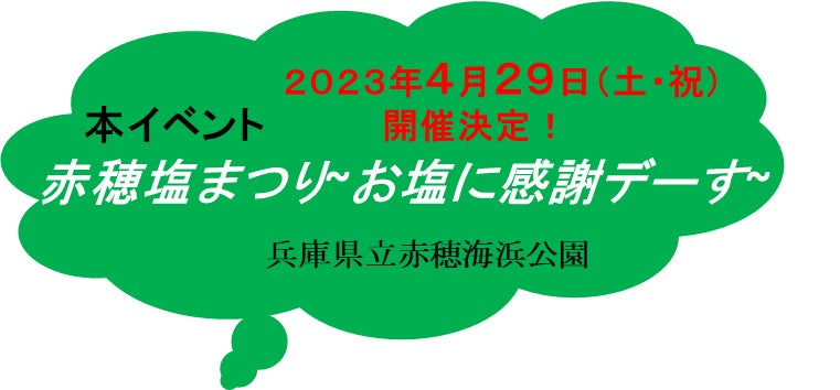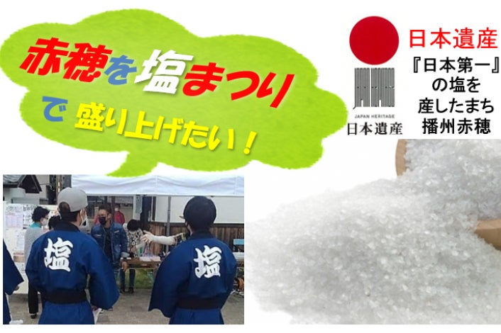 日本第一の塩を産した町播州赤穂は、古来より「塩」中心に栄えてきました。「塩」は私たちの生活に根付き、赤穂の多くの伝統と文化を育んできました。「塩」と触れ合い「塩」への感謝の気持ちを感じていただけるイベントを行うことで、赤穂の町を盛り上げ、「塩の町播州赤穂」をPRしていきたいと思います。