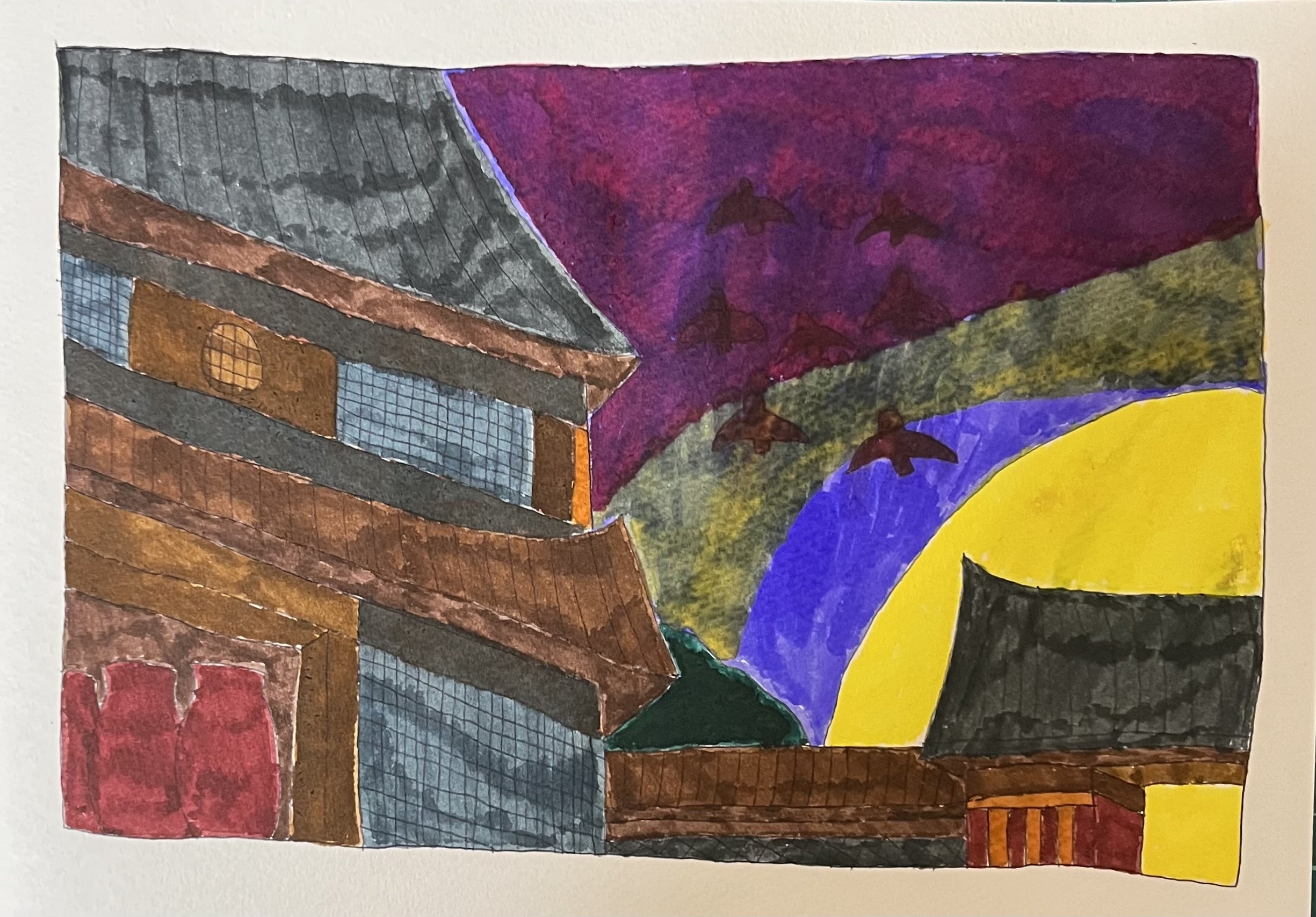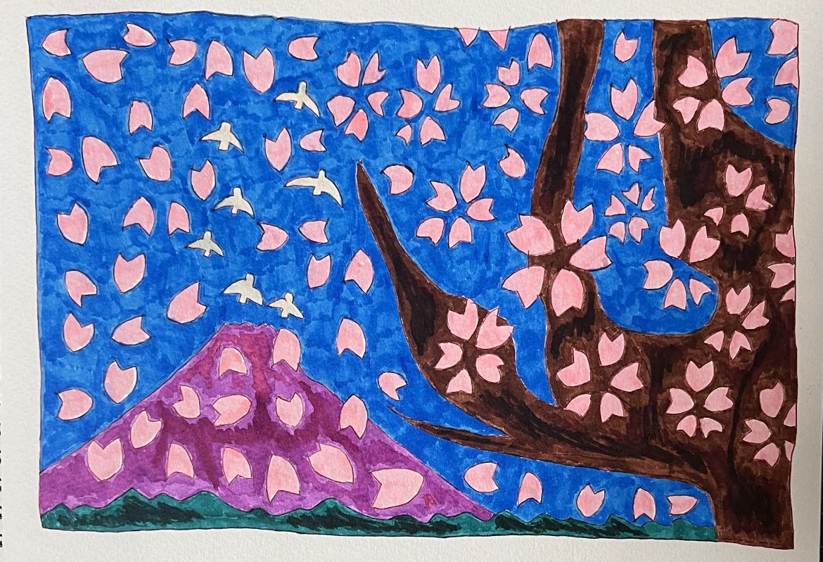 息子が言うにはお寺の絵みたいです。このように気持ちが絵に出てきます。桜の絵と同じ日に描いた物です。少しでも良いもの描く為にリアルな活動報告をしていきます。