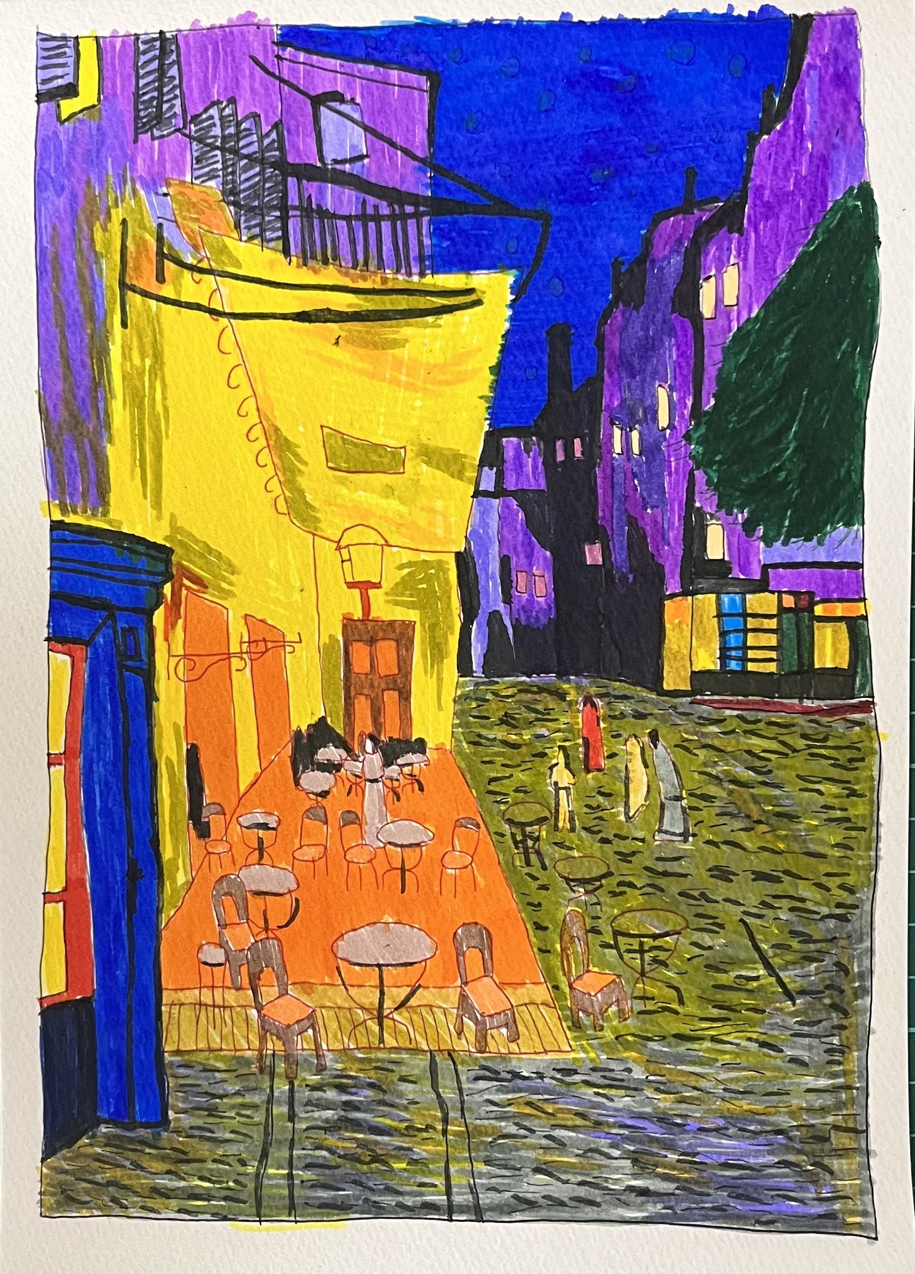今は毎日模写で描いてます。息子は色彩の感覚が弱いので影や物の質感などを表現するのは得意ではありません。ボールペンではスラスラ描けるのですが色を入れるのはものすごく時間が掛かります。そこを少しでも良くなるように練習をしています。息子は海外のアニメが好きでカートゥーンネットワークと言う番組を小さい頃から見ていました。息子の夢はアニメーションや派手なキャラクターを描くことです。なので色彩感覚は重要です。まだ日本では支流ではないですがカートゥーンと言うジャンルアートを目指してます。