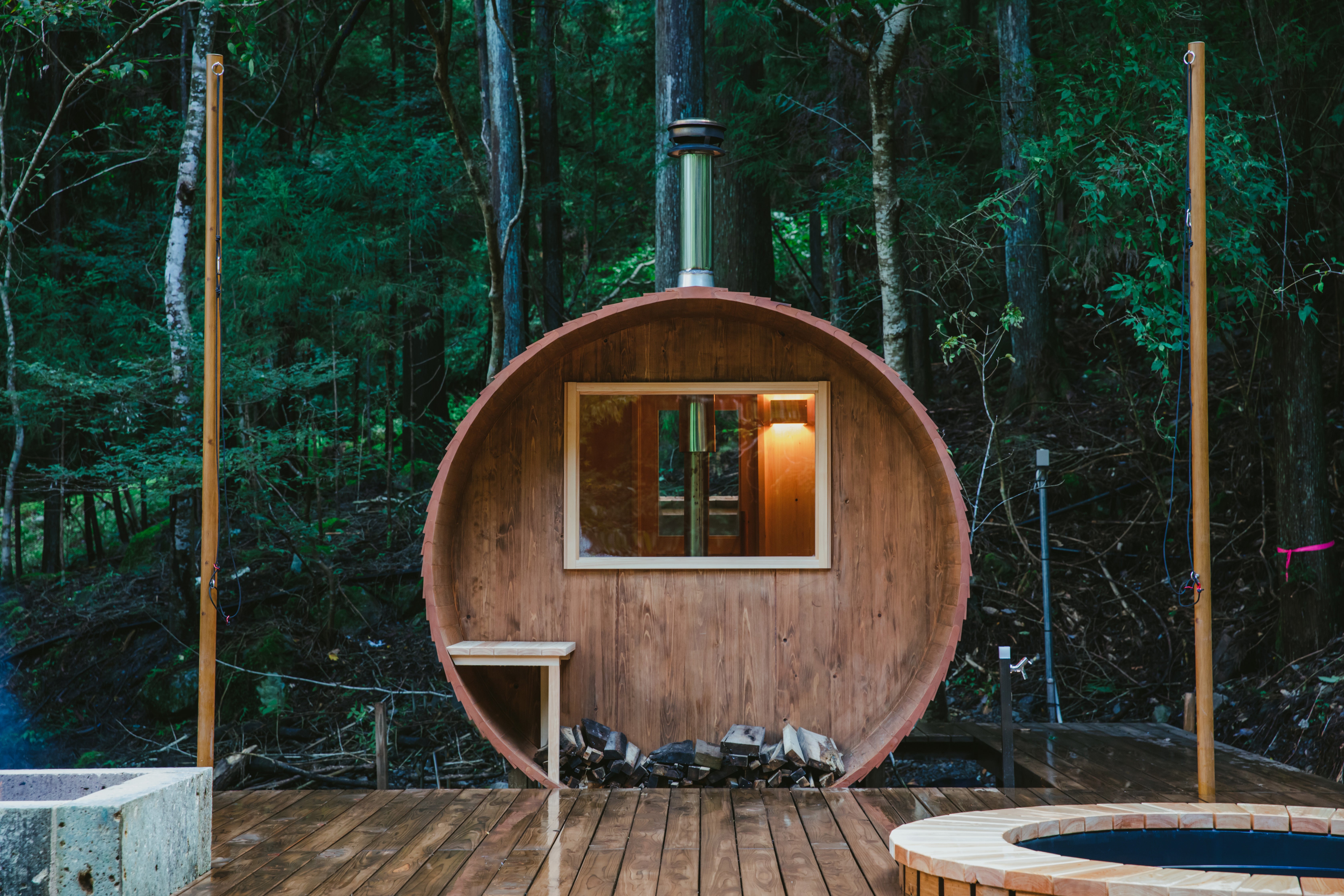 石畳茶屋の屋外スペースにバレルサウナを設置します。バレルサウナとは、サウナ発祥の地フィンランドで古くからつたわる樽状のサウナルームのことを指します。弊社のバレルサウナは、静岡県産ヒノキ材を使用し、静岡県内の加工業者さんにバレルサウナを製造していただいています。完全貸切制のサウナ施設なので、水着着用で男女でお楽しみいただけます!