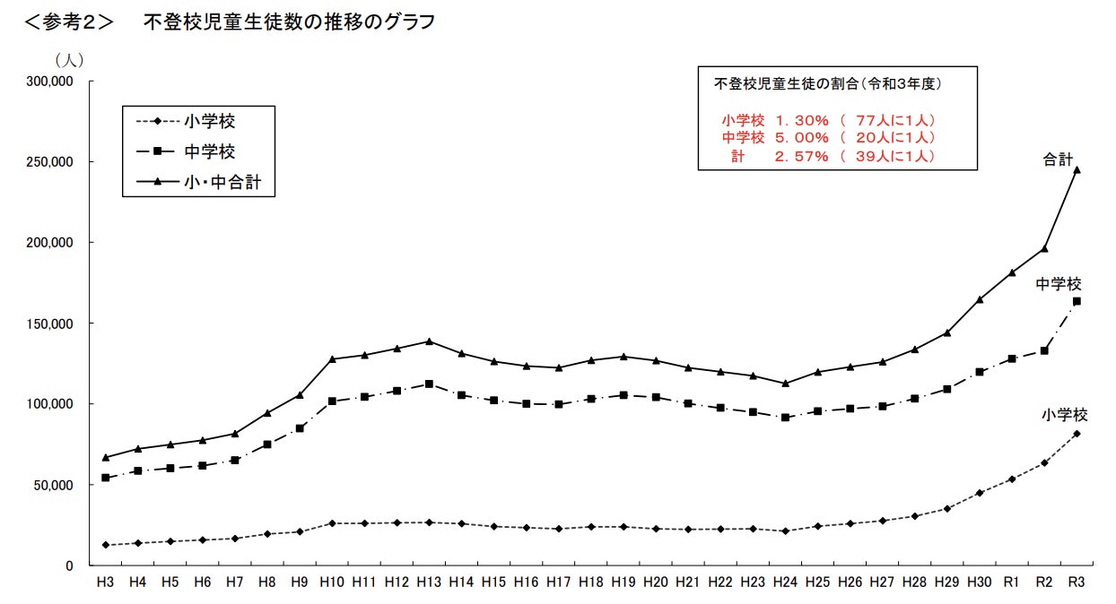 「令和3年度 児童生徒の問題行動・不登校等生徒指導上の諸課題に関する調査結果について(文部科学省初等中等教育局児童生徒課)」より