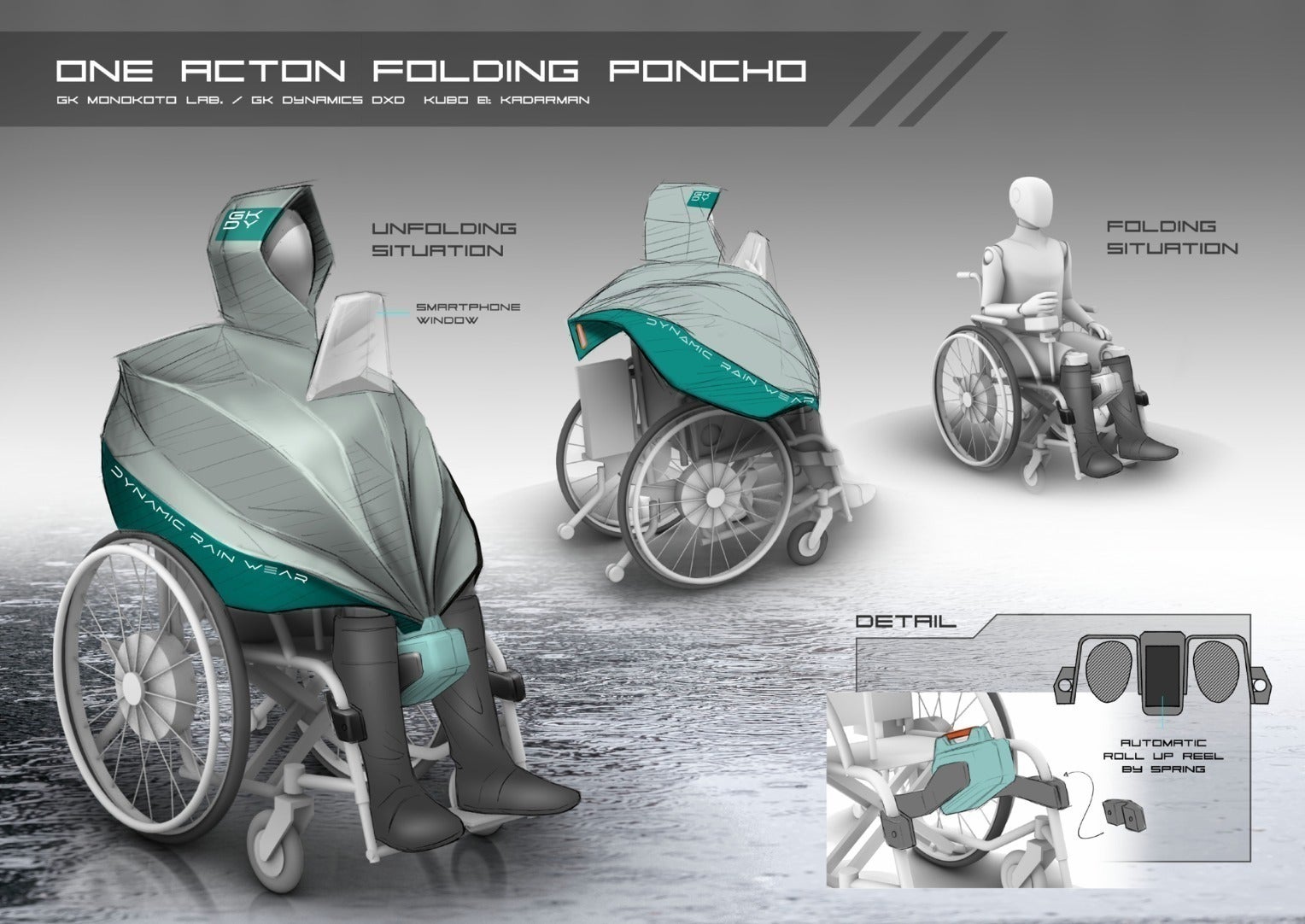 CAMPFIREオンラインサロンGKモノ/コトLab.にてデザイナー、車いすユーザー、学生や私のような一般の方たちと共創しながら雨具のデザインを積み上げて来ました、現在はワンタッチでたためるポンチョのプロトタイプの制作を行っています。