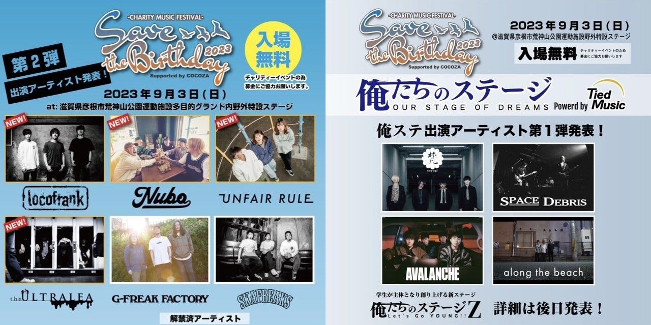 Save the Birthday 2023の第2弾出演アーティストが発表されました!そして現在発表されているアーティスト情報が掲載された(仮)フライヤーが完全しました!各地のライブハウスで手配りする予定です。SNSが便利な世の中ですが、それだけに頼らず、自分たちの足でセブザバをPRしていきたいと思います!開催まであと82日。クラファン終了まであと2週間です!達成率は現在47パーセントと、非常に厳しい状況ですが、悔いが残らないよう最後まで全力で発信を続けていきます!引き続き応援宜しくお願いします!