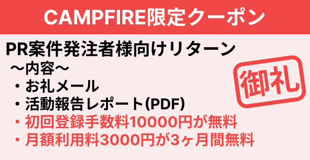 ・15,000円:PR案件発注者様向けリターン【限定30名様】