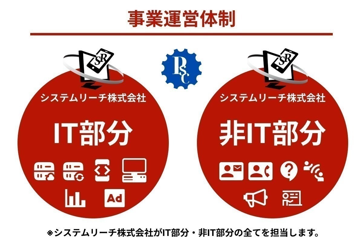 システムリーチ株式会社がIT分野の確かな知見と経験を生かして今回のマッチングプラットフォームのITシステム・データ部分〜事業運営部分を担当することで安定したマッチングプラットフォーム運営環境を築きます。