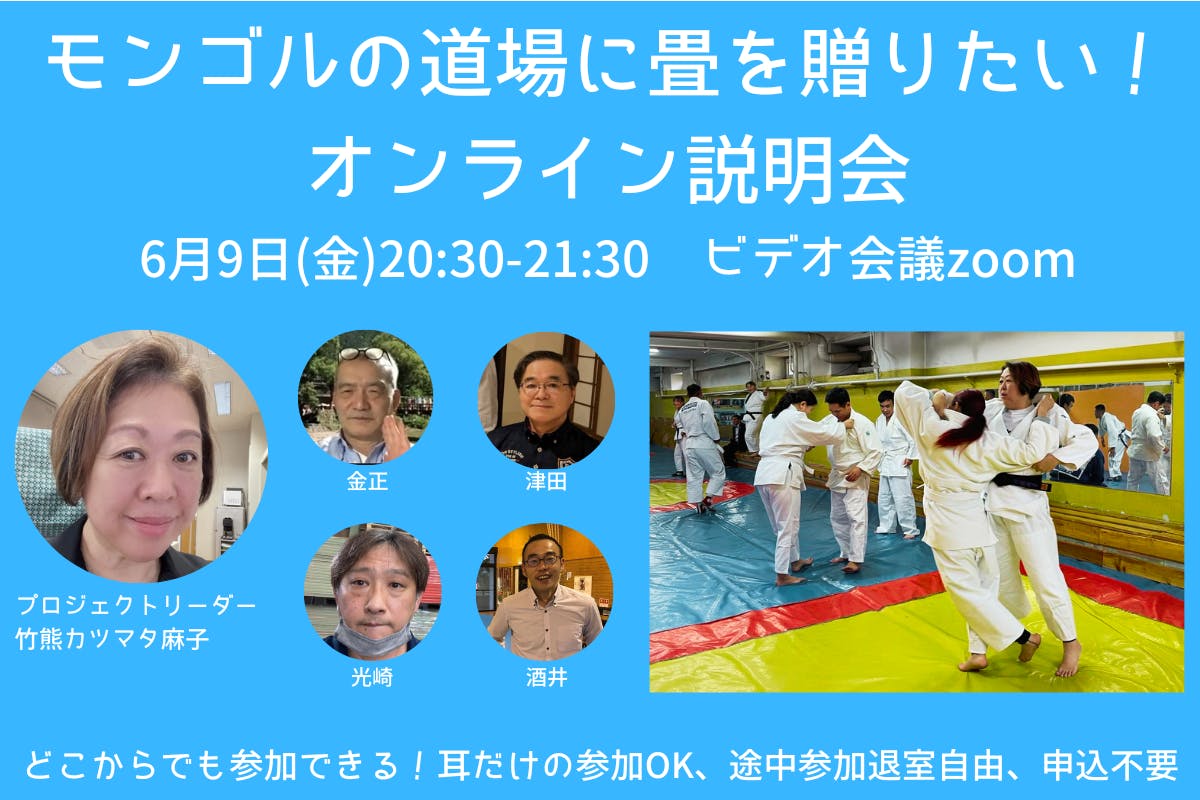 6月17日(土)20:00から、モンゴルとビデオ会議をつなぎ、畳の寄贈先であるモンゴル国体育大学とモンゴル国視覚障害者協会のご担当者からお話をいただく予定です。こちらもお楽しみに!