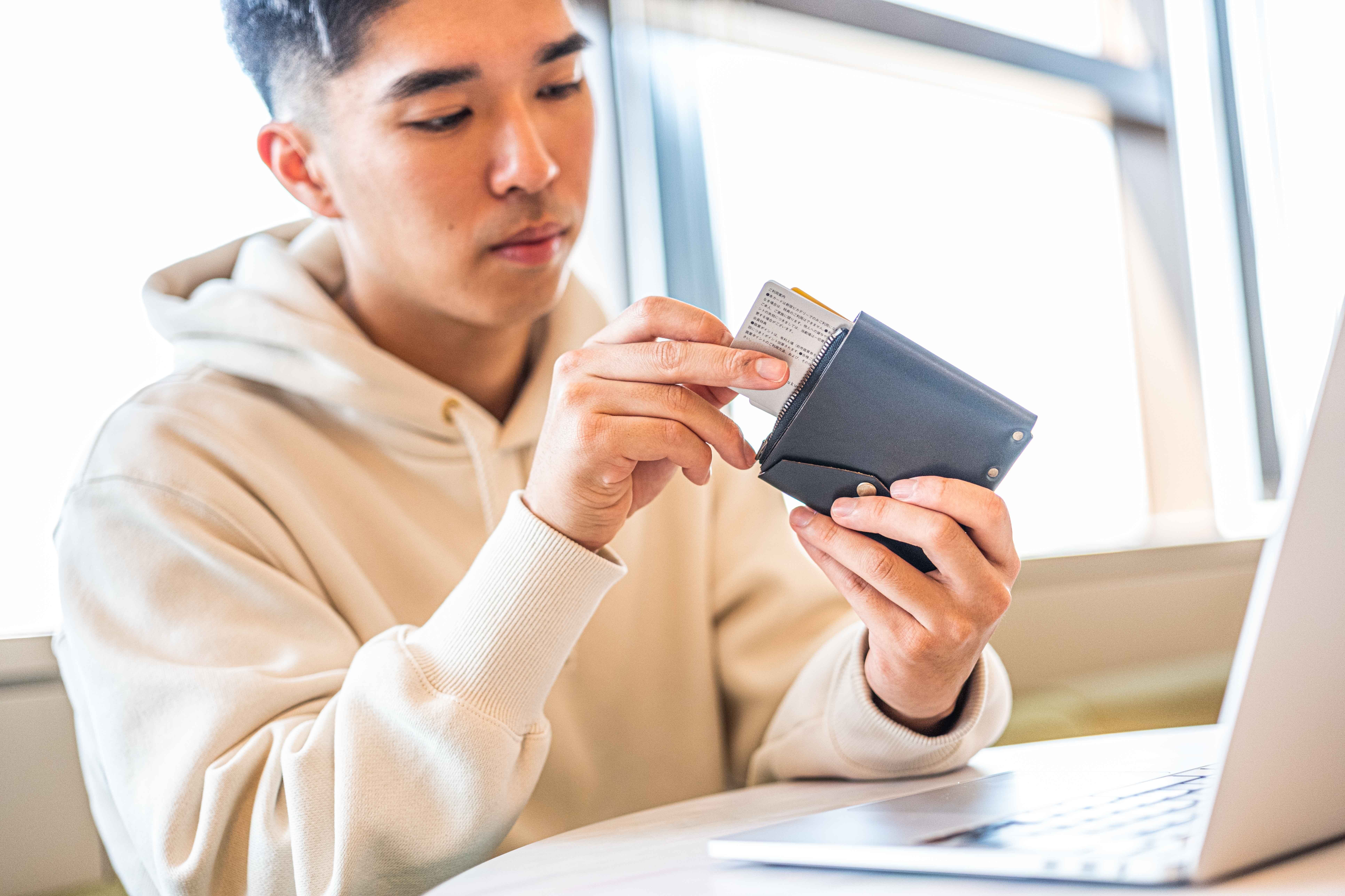 フラップを開かずとも目当てのカードがすぐ取り出せて、スマートな会計が可能です。ファスナーを閉じればカードを落とす心配がないのも利点です。