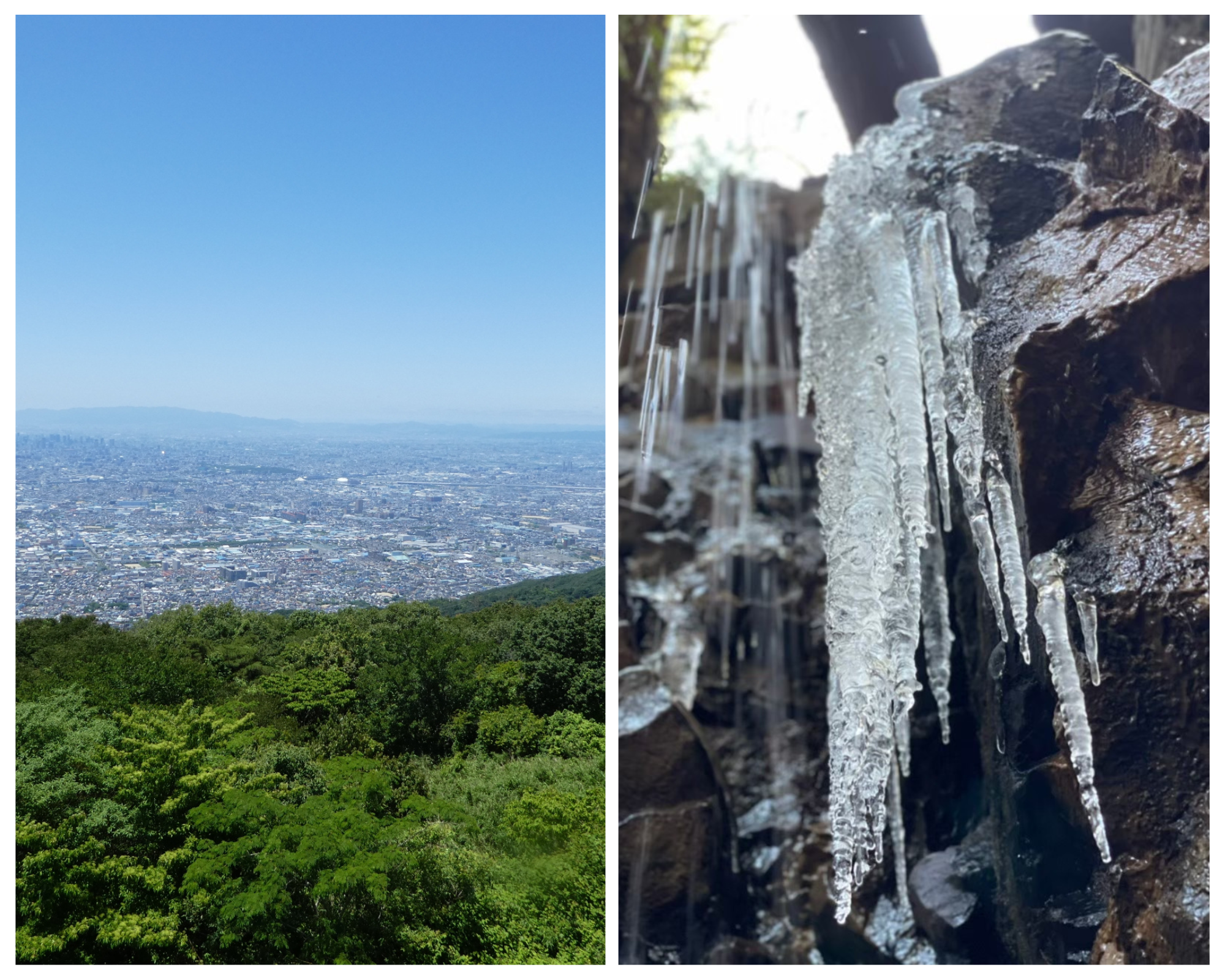 生駒山から見た大阪平野 冬は寒くつららもできる