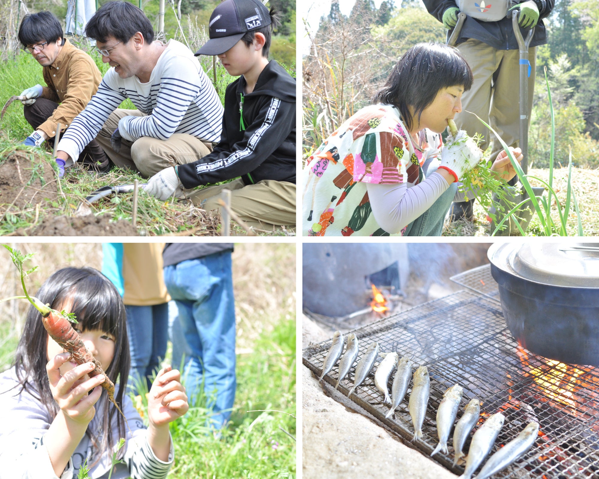 毎月の畑部は大人も子どもも一緒に 最後のお楽しみは囲炉裏ご飯