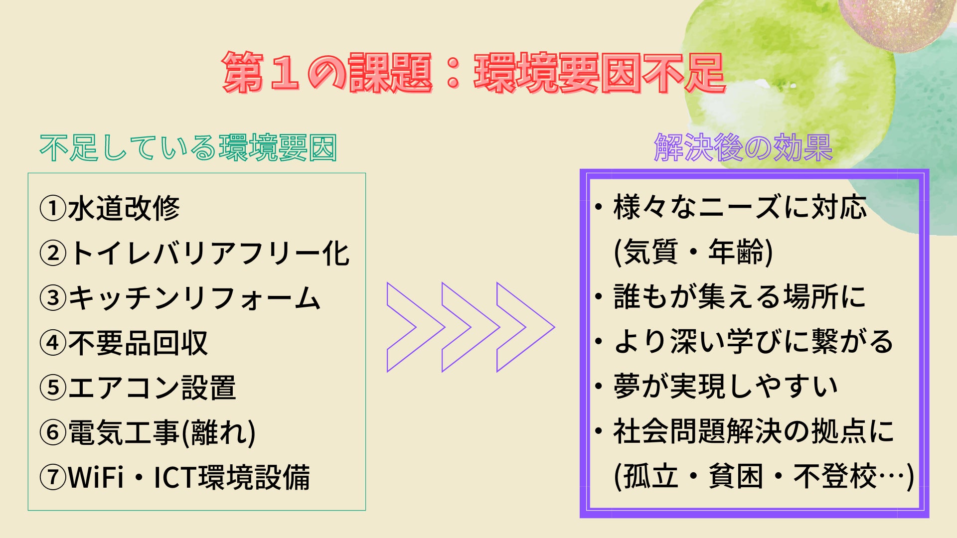 今回の水道改修プロジェクトは、不登校支援に留まらないあらゆる社会課題に取り組む活動拠点への第一歩です。