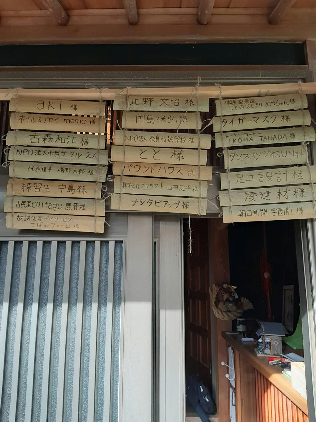 2023/11/14 16:19大変お待たせしてしまいましたが、ご支援をくださった方たちのお名前を刻んだ竹を、ようやく和草に飾ることができました!竹プレートのリターンを選んでくださった方のお名前を刻ませてもらっています8月に竹藪から竹を切り出し、カビ防止の為にグツグツと煮まして、1ヶ月以上乾燥させてから、はんだごてで焼いて文字を刻んでいきました和草の玄関を通るたびに目に入ります。1文字1文字時間をかけて焼いただけに、愛着もひとしおもうすっかり水が出ることも、トイレがあることも、キレイなキッチンも、当たり前になりつつある和草ですが、これを見るたびに、ご支援くださった方々のおかげなんだと、噛みしめたいと思います もっと見る