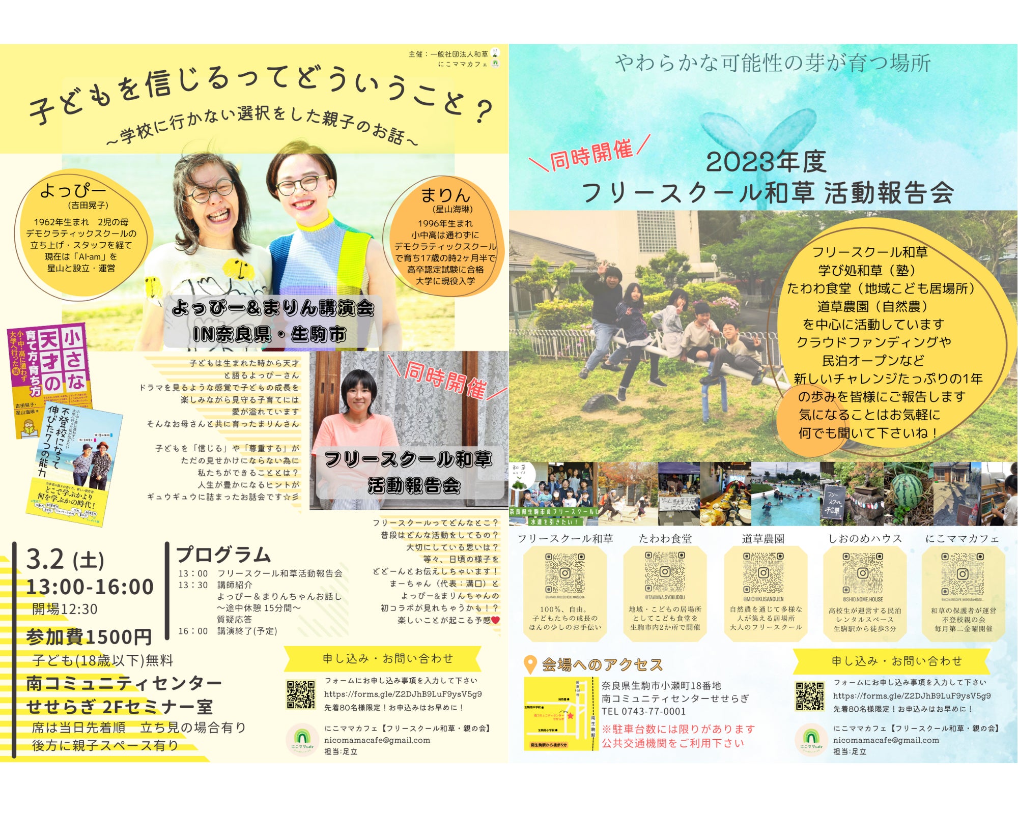 アーーンド、クラファンのまとめも兼ねての2023年フリースクール和草活動報告会も同時開催です!