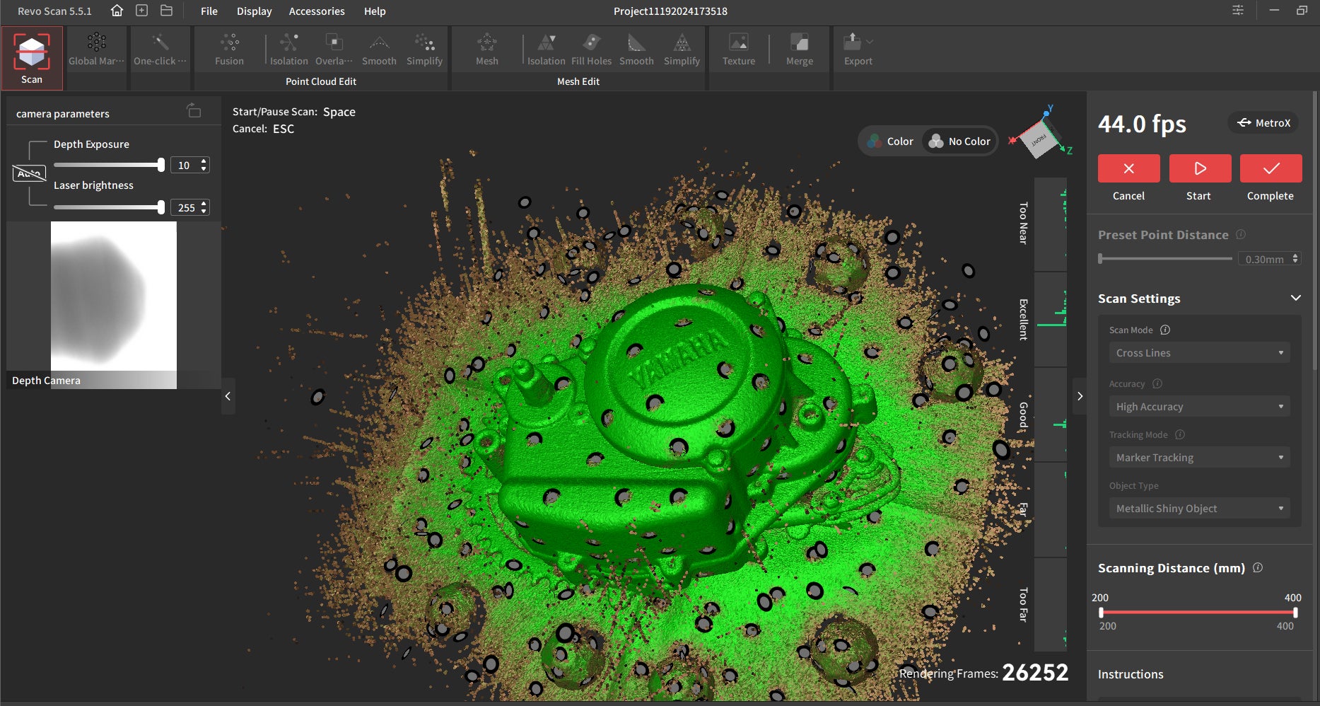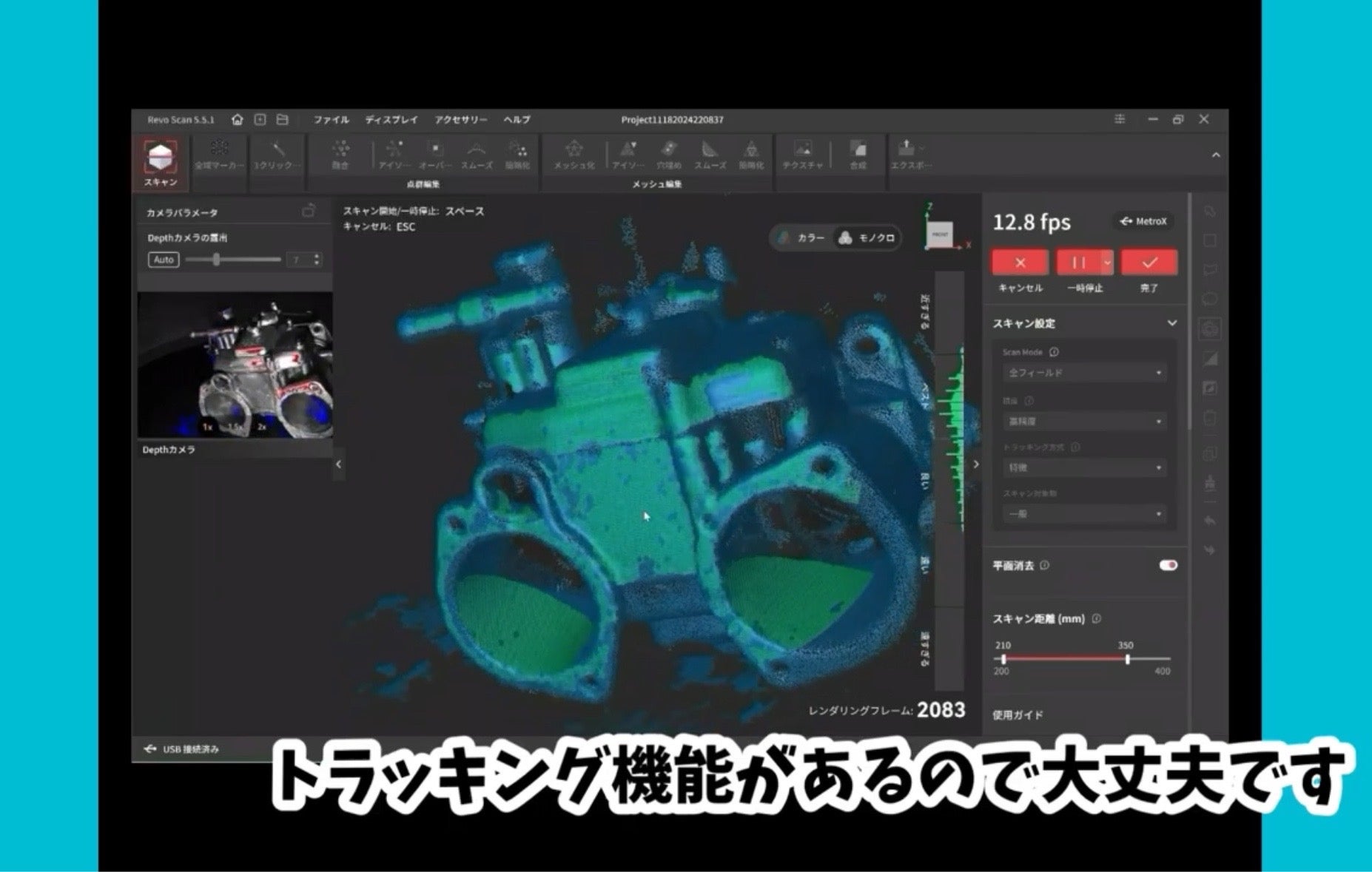 全フィールドモードを活用して自動車部品をスキャンしました。スキャンスプレーやマーカーは一切使用していません。