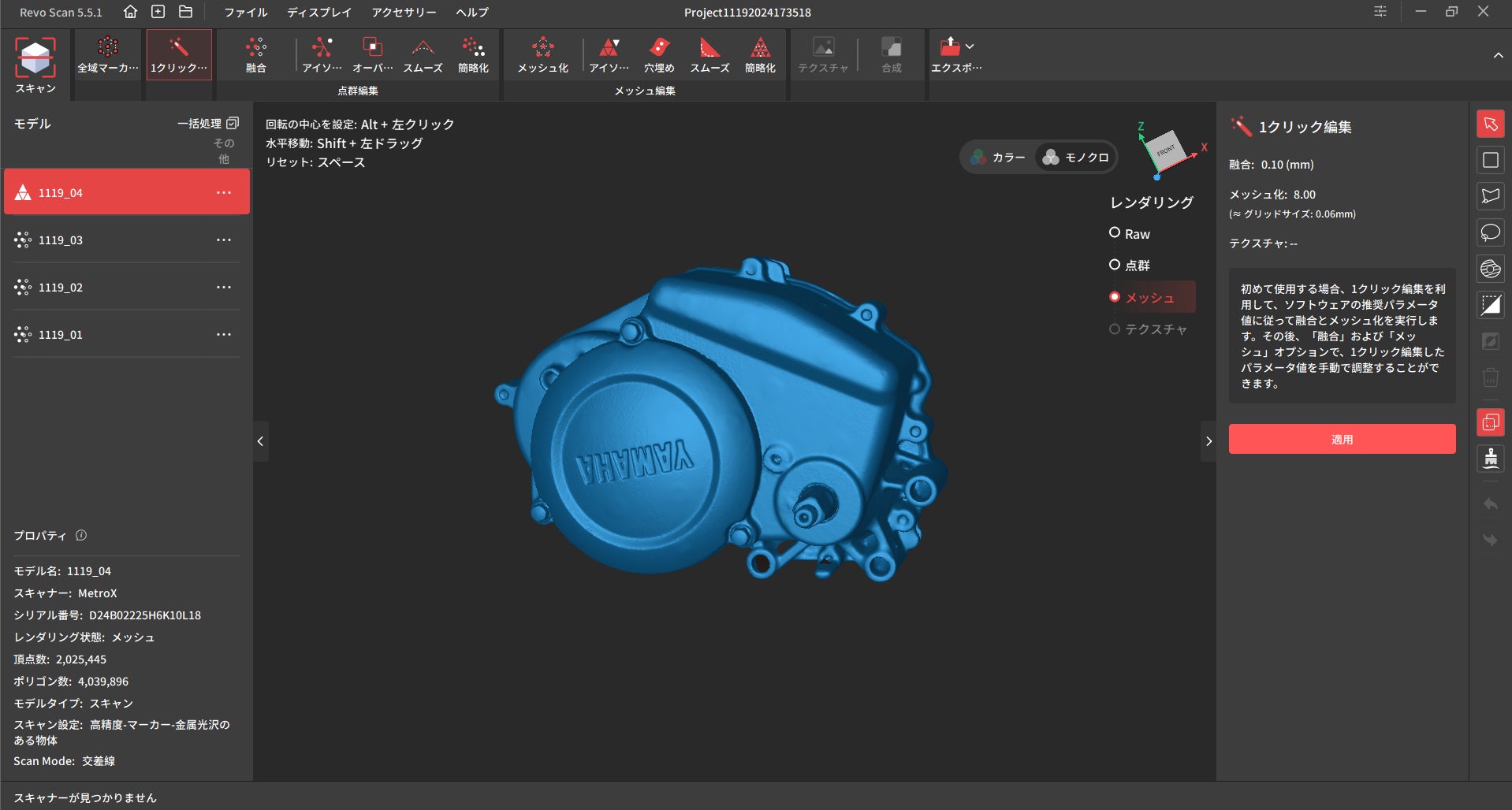 初心者の私でもここまでスムーズに使えたのは驚きでした。ブルーレーザーのおかげで金属部品もスキャンスプレーなしでスキャンできるのは非常に便利です。また、しっかりと保護ゴーグルも付いているので安心して使えます。