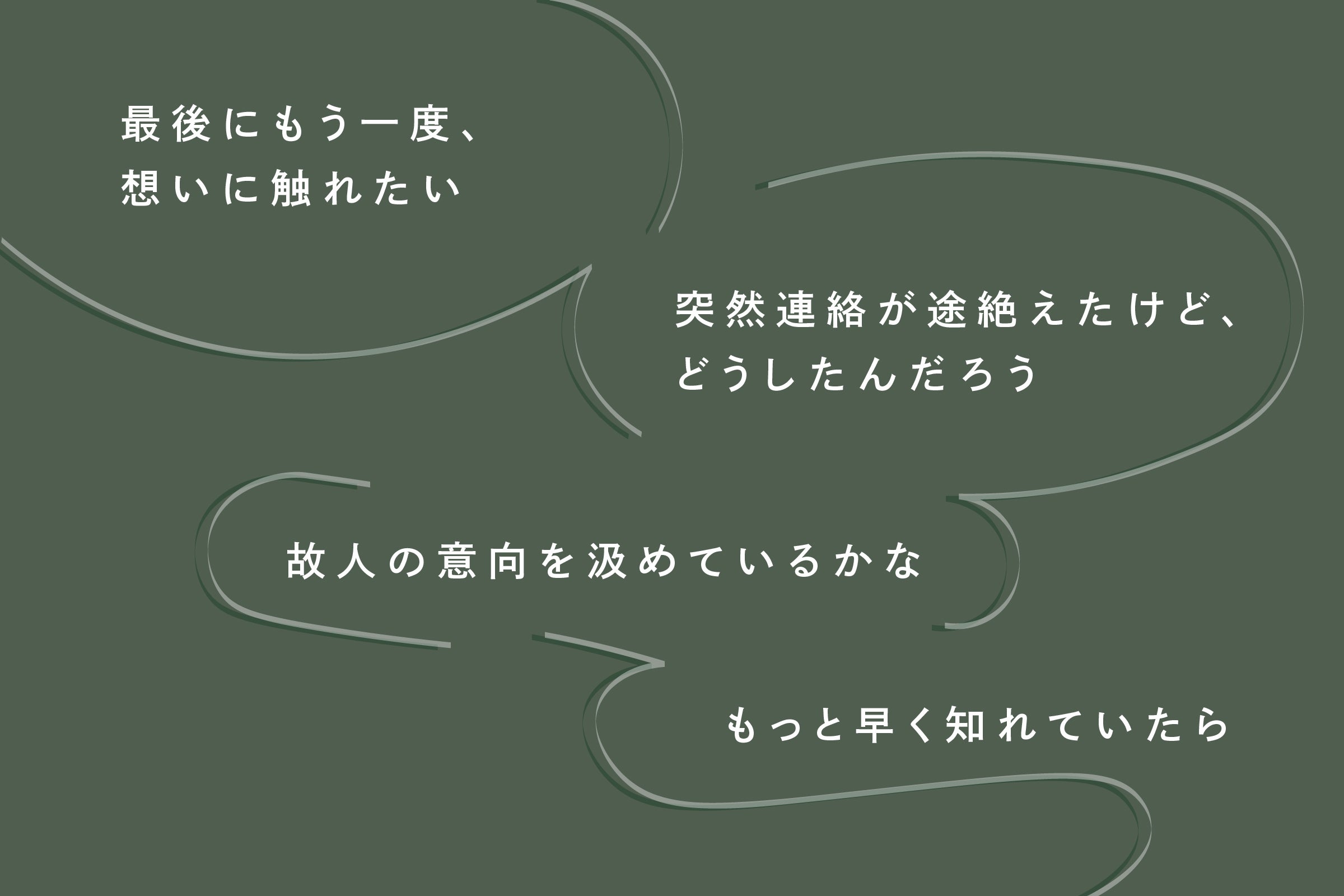 尊敬していたり、応援していた人が亡くなってしまったとき、その人が残した便りを受け取ることで、少しでも故人の想いを汲んで弔うことができるようにしたいです。