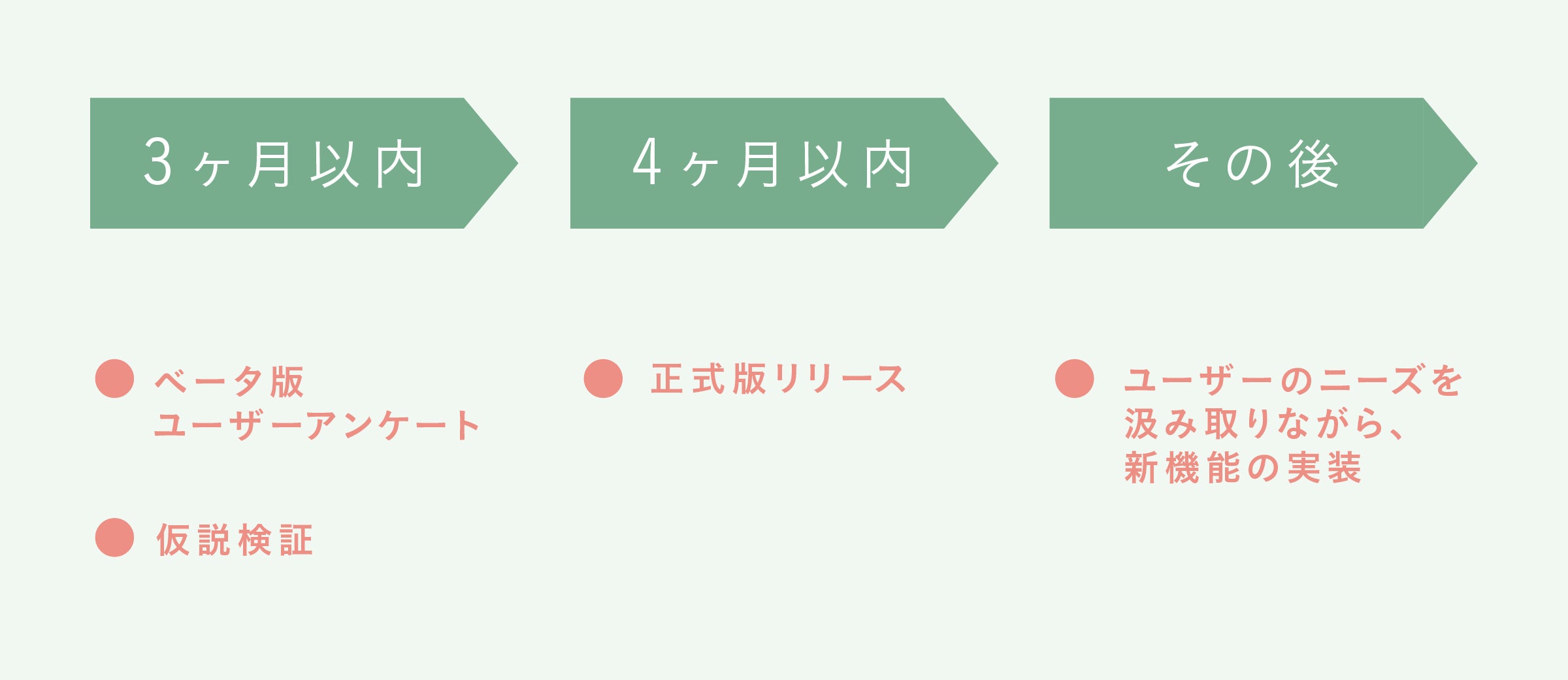ベータ版を運用していく中で、ユーザーのニーズを汲み取りながらどんな機能を実装させていくか検討します。