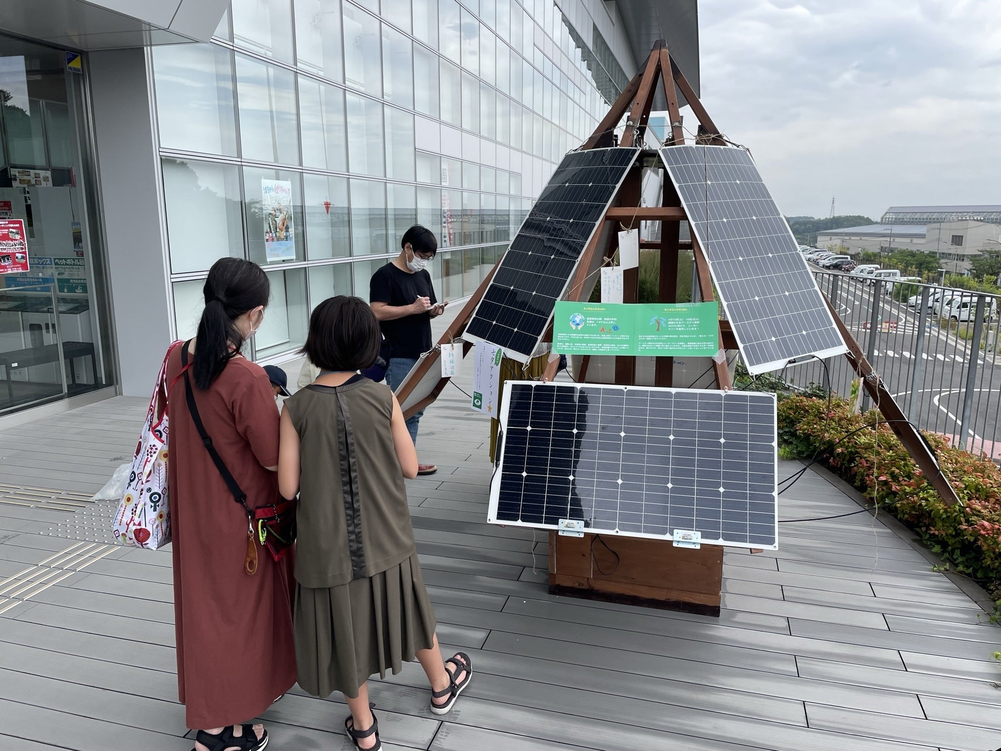 2023/09/01 18:03ソーラーツリーのクラウドファンディングにご協力くださった皆様。改めまして、ありがとうございます。4月のアースデイ2023での本番展示以後も、ソーラーツリーはあちこちで展示されてきました。そして、この9月には多くのソーラーツリー展示イベントがあります。そして、10月、11月、12月も。「移動設置型太陽光発電設備」としては、たぶん世界で初めて登場した「ソーラーツリー」(発電規模800W)ですが、今後もあちこちのイベントに登場しますので、ぜひ会いにきてください!*冒頭写真は町田バイオセンターでの展示の様子川崎と町田のイベントに登場5月21日(日)には川崎・溝の口駅での「かわさき公害フェスタ」、7月8日(土)には町田バイオエネルギーセンター(ごみ焼却センター)での「3Rまなびフェスタ」でソーラーツリーが展示されました。川崎ではJR溝ノ口駅の出口付近に展示され、駅を乗り降りする多くの人がソーラーツリーを目撃することになりました。町田では逆に人通りのないゴミ焼却場の一角でした。ここでは目的を持ってバイオエネルギーセンターに来る人としか出会えません。来訪者は200人ちょっとでしたが、実はこのイベントを支えていた何十人もの大学生たちと出会えました。大学生たちは組み立てや、搬入搬出も手伝ってくれて、溝ノ口駅で通り過ぎた人たちとは違う濃密なつながりができたように思います。駅前の雑踏の中から見えるソーラーツリー町田バイオマスセンターではちょうど七夕と一日違いでしたが、「環境に関するお願い」を書いた短冊をツリーにぶら下げるというアクションをしました。その場での呼びかけだったので、短冊はそんなに多くはありませんでしたが、子供たちは楽しく応じてくれました。ソーラーツリーイベントのヒントをいただいた感じです。ソーラーツリーで七夕アクション台座のバラバラ事件実は川崎での展示後の片付けの最中に、台座バラバラ事件が起きました。ソーラーツリーの部品の中で最もかさばるのが台座です。柱を乗せている大きな箱で、中に水を入れたポリタンク5つが入っていて、ソーラーツリーが風に飛ばされることのないように守っています。この台座を台車に乗せて移動中に、急いでスピードを上げたスタッフが、横断歩道の段差に台車をぶつけ、乗っていた代車が激しく落ちてしまったのです。台座は4つの板がネジで留めてあるだけなので、歩道に落ちて見事にバラバラになってしまいました。これはある意味、ソーラーツリーの弱点を早めに知らせてくれた啓示とも言えます。台座に乗ったりして作業するので、この弱さは補強しなければということになりました。まずビス留めだけでは心もとないので、内側からL字金具で補強しました。それでも、町田でのイベントではグラグラして弱いと感じたので、さらに外側からも補強しました。何度も組み立ててはバラしてを繰り返す中で、どことどこの位置が最も組み立てやすいのかなどの実地訓練となり、組み立てマニュアルも充実してきました。町田イベントの参加者の中に建築家の方がいて、いろいろ不備があるけど、もっと精密に設計して「市販品」にできるようにしたいと言ってくださる方も現れました。バラバラになった台座今後のイベント出展予定は満載ソーラーツリーは「木」なので、東西南北に太陽光発電パネルをつけています。ふつう発電所では南側を中心にパネルをつけますが、それでは「木」にならないのです。北側のパネルなんか発電しないと思われるかもしれませんが、お天気は毎日晴れではありません。曇りの日には南も北もありません。雲の中を乱反射した太陽光線により南北パネルとも同じように発電しています。町田でのイベントは強い曇りでしたが、太陽光パネル接続時に1%程度に減っていた蓄電池の電気が、終わる頃には49%に達していました。500Whの小さな蓄電池ですが、5時間足らずでこうですから、朝から夕方までなら曇りでも100%行けそうだなと感じました。そんなソーラーツリーをじっくり見るチャンスが、今後も続々あります。以下、一覧でお示ししますので、お近くの方はどうぞ出会いにきてください。9月9日(土)10時〜15時 江ノ島でエコフェスタin江ノ島。11時から発電所づくり相談会、13時からソーラーツリーの仕組みを説明するツアー、14時から「エコ作と節電」のお話。15時終了です。https://lit.link/ecofesenoshima9月18日(月)10時〜16時 ワタシのミライ「NO NUKES & NO FOSSIL再エネ100%と公正な社会を目指して」2023.9.18 集会& パレード会場:代々木公園B地区(アースデイの会場と一緒です。)https://watashinomirai.org/20230918_nnnf/9月23日(土)、24日(日)10時〜21時 中津川ソーラー武道館中津川 THE SOLAR BUDOKAN 2023会場:岐阜県中津川公園内特設ステージhttp://solarbudokan.com/2023/9月30日(土)おひさまフェス×星空上映会inかわさき会場:at二ヶ領せせらぎ館前の多摩川河川敷(最寄駅は登戸)https://ohisamahoshizora.mystrikingly.com/?fbclid=IwAR0aaq-m7ie_lyI7C5NV-DseEHHXNql_Ymk7yONMKH-v1Je3yLmxC