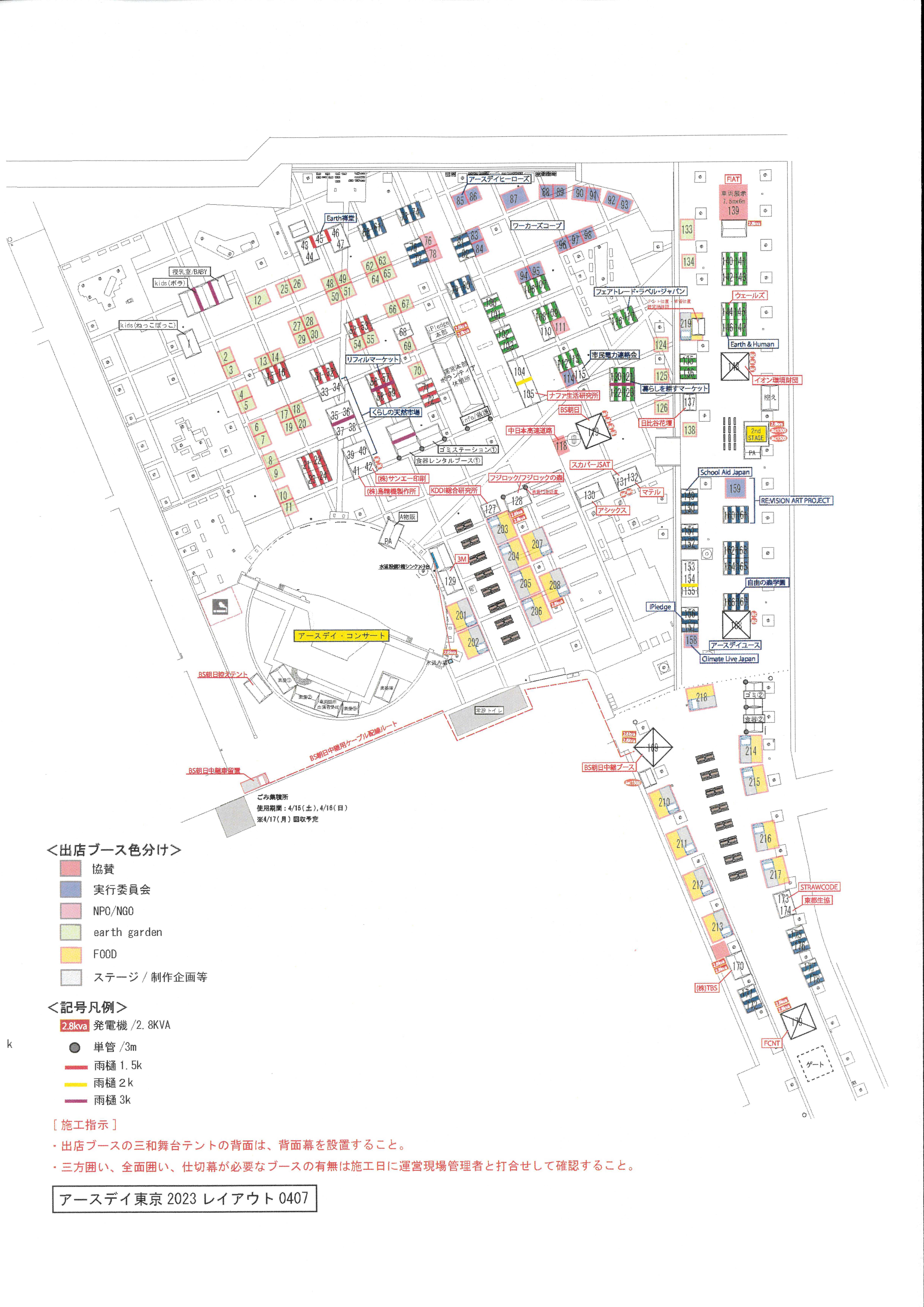 お昼は交代で食べに行きます。アースデイ会場内にフードブース多数。ゴミを出さないようにマイ食器を持ってきてください。(食器を借りると100円かかります。)