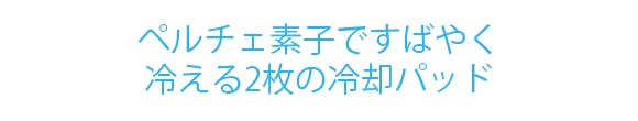 内側にはすばやく皮膚を冷やす2枚の冷却パッドが付いています。その秘密は半導体のペルチェ素子。FB08は直流電流で温度を自由に制御できるペルチェ素子を使用し、効果的な冷却を可能にしました。