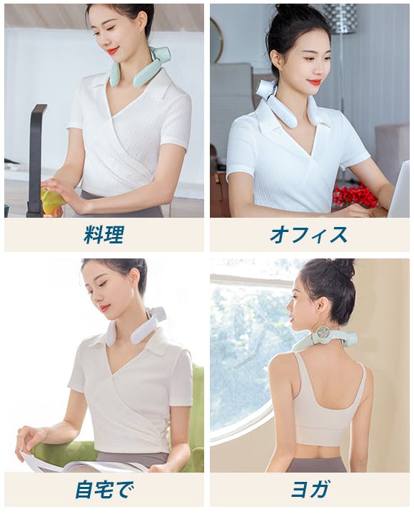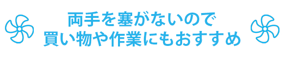 FB08はヘッドホンのような首掛け式で両手が使えますので、夏の買い物や屋外での作業に適しています。ハンディファンのように手が塞がることがありませんので、オフィス作業や家事の時にもおすすめです。